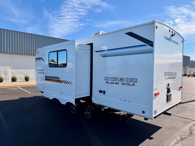 With any Cherokee Alpha Wolf, you'll enjoy outstanding amenities and quality construction at an affordable price. Each model is built with a "ToughBend" rigid skirt metal design, 5/8" tongue-and-groove plywood floor decking, and a "SuperTruss" roof structure built for long-term durability. Pet owners will appreciate the "clean sweep" floor design (no floor heat vents) and the integrated Leash Latch pet safety technology.