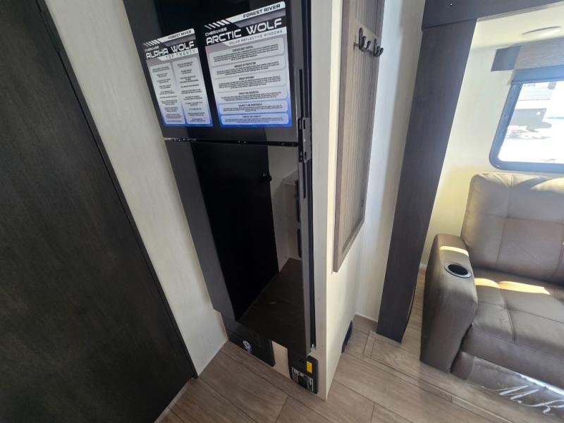 With any Cherokee Alpha Wolf travel trailer by Forest River, you'll enjoy outstanding amenities, quality construction, and an affordable price. Each model features a "ToughBend" rigid skirt metal design, 5/8" tongue and groove plywood floor decking, and a "SuperTruss" roof structure built for countless camping memories. There is a pet friendly "clean sweep" floor design with no heat vents indoors, along with a super lumen lighting system, a 15,000 BTU quick cool central air conditioning, and many more comforts. There are many convenient exterior features such as, Leash Latch pet safety technology, an outside shower with hot and cold water, and exterior steps with oversized landing and quick release. The Weather Guard Package will add protection against the elements with an armored underbelly tank enclosure and forced air heat, thermo-control reflective safety glass windows, and upgraded laminated exterior walls with block foam insulation!