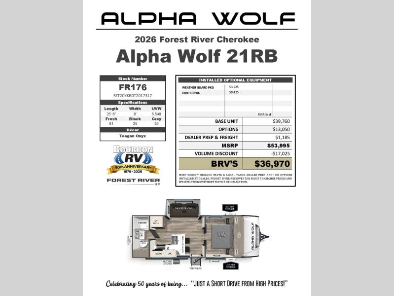 New 2026 Forest River RV Cherokee Alpha Wolf 21RB Travel Trailer