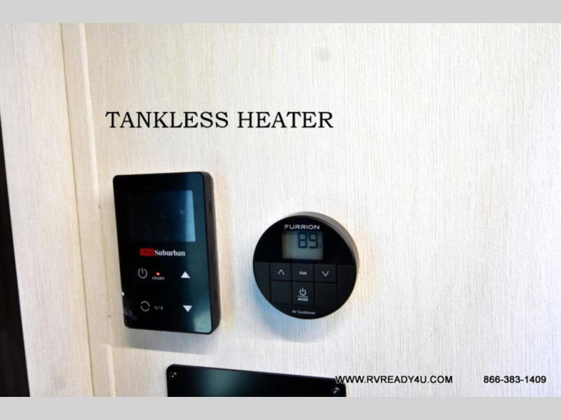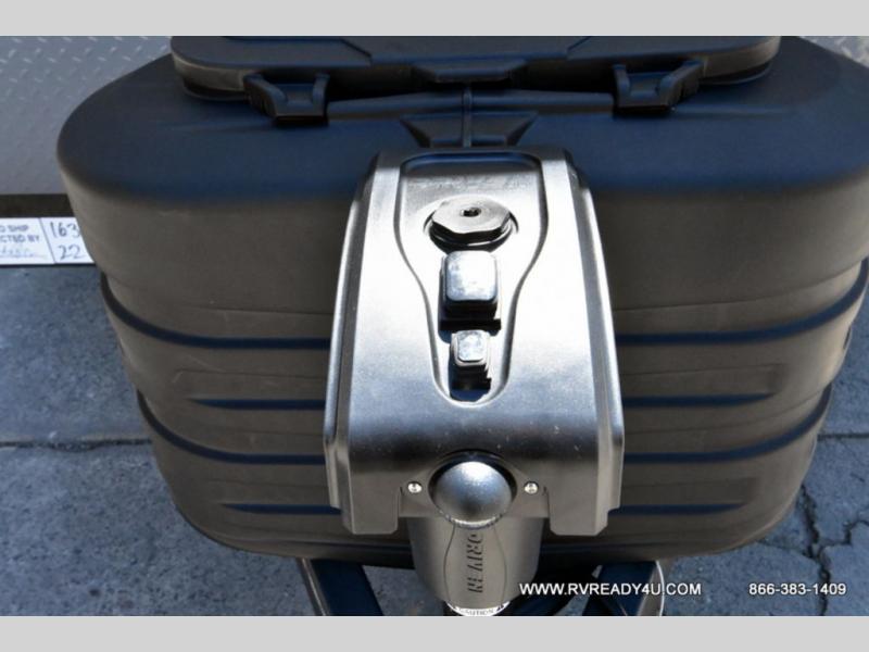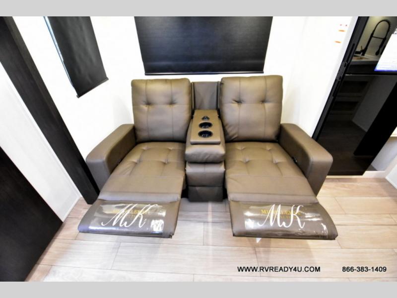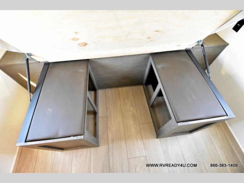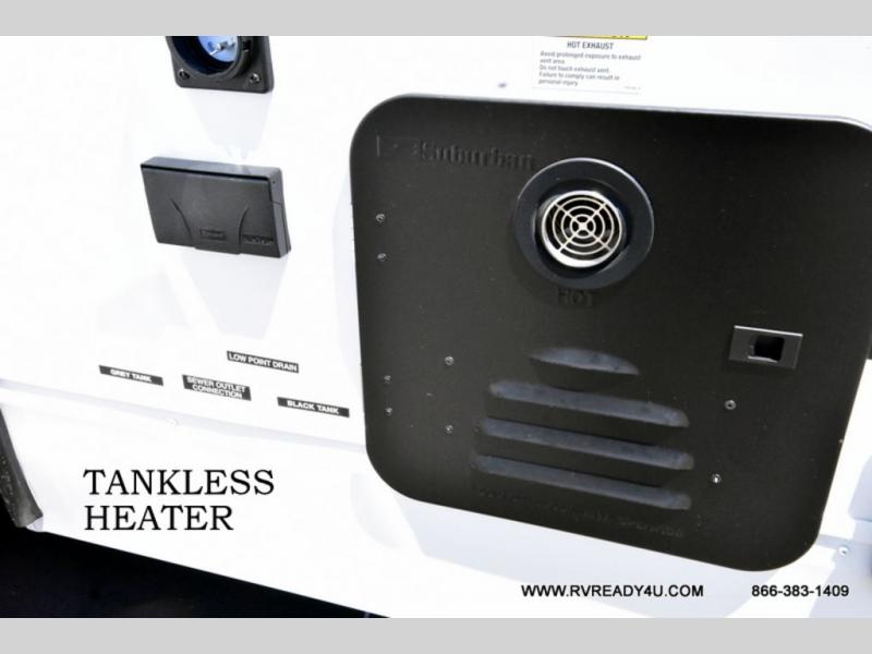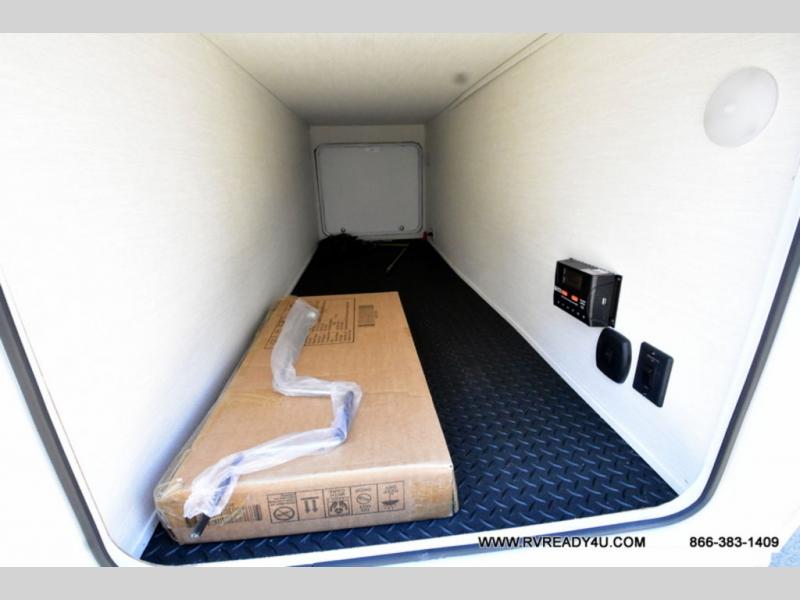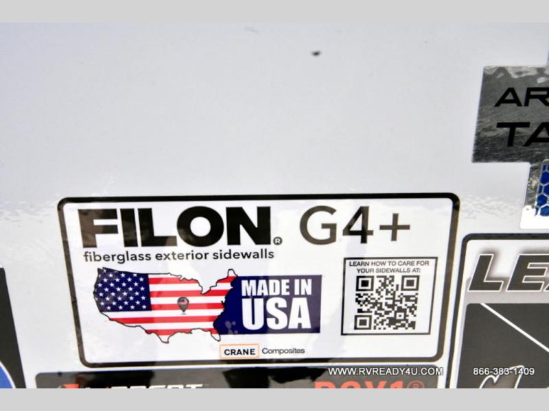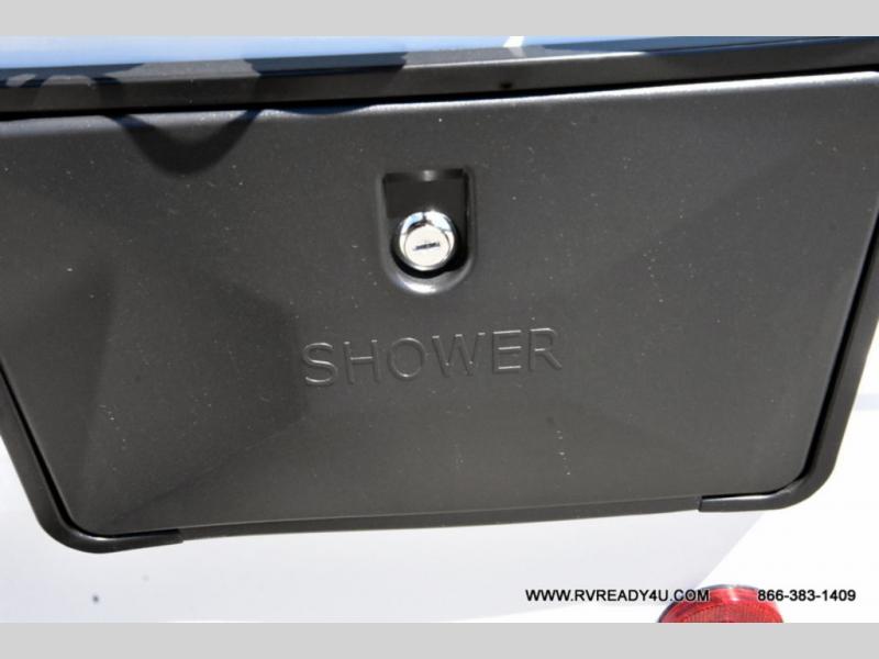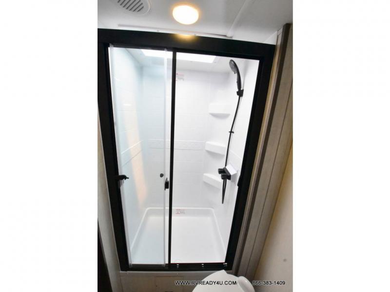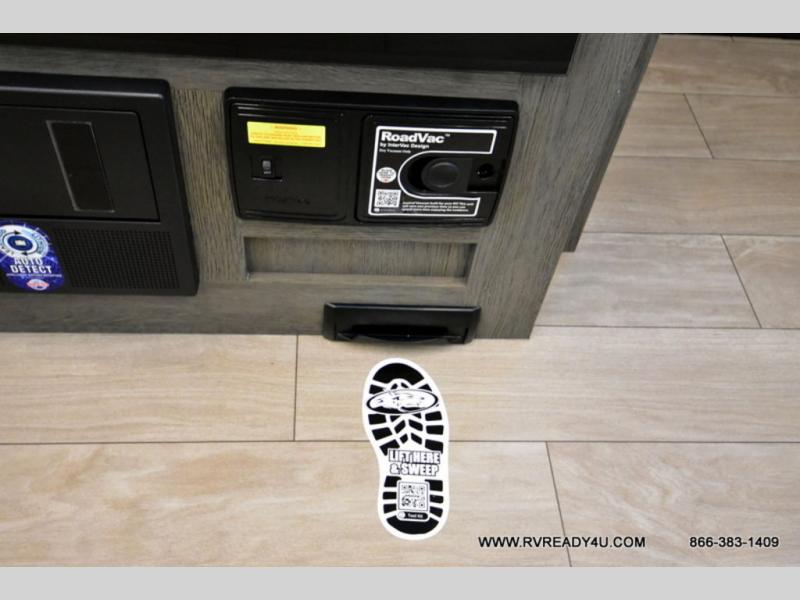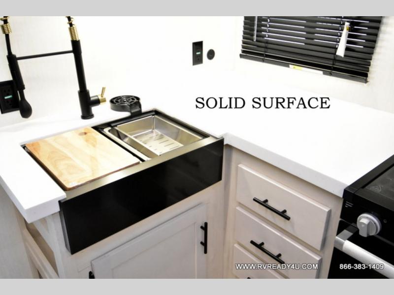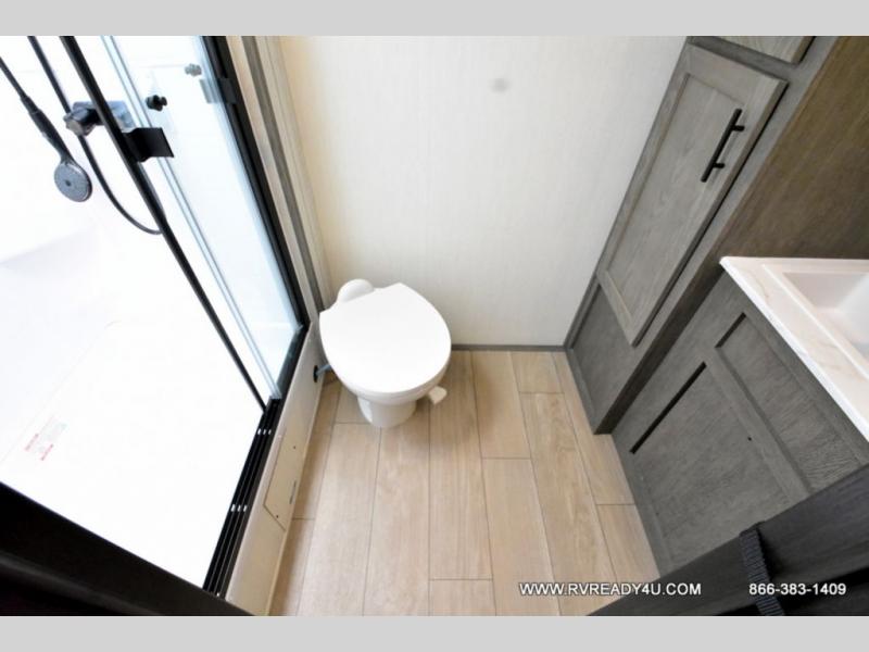 Looking for the perfect trailer for two with a spacious bathroom and bedroom? This Alpha Wolf provides a rear oversized bathroom complete with linen storage and a sliding door that saves space and looks great. The front bedroom includes a walk-around queen bed, dual wardrobes, a sliding door plus windows for natural lighting and great views. The main living and kitchen area is spacious as well with a large slide out that includes theater seating with a removable table across from the entertainment center with a fireplace, a 12V residential style refrigerator for lots of cold storage, and a pantry for your snacks and dry goods. You can decide to cook indoors on the three burner cooktop, or head outdoors to cook on the outside kitchen!