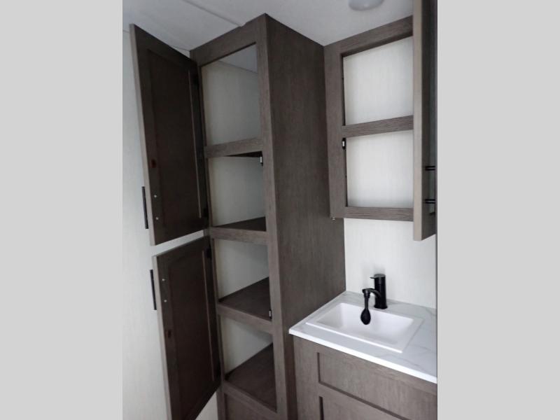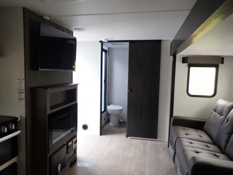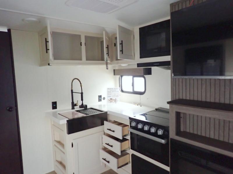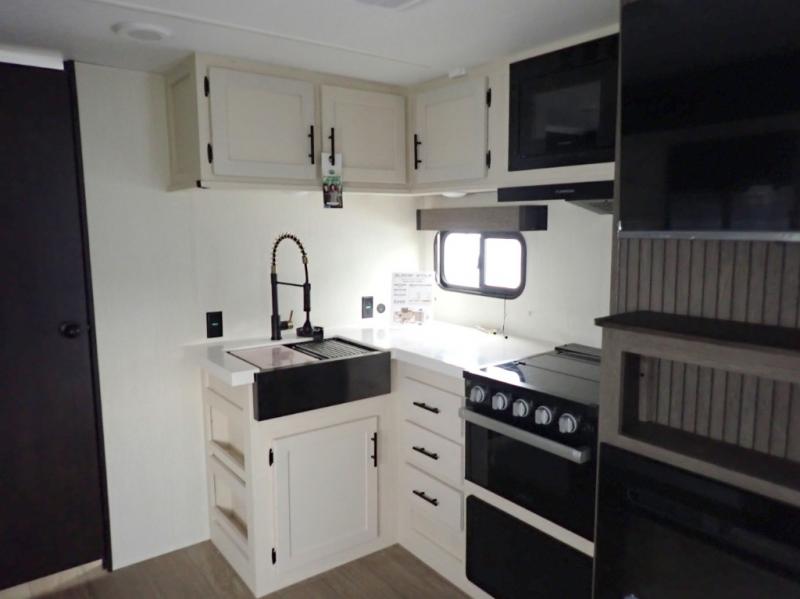 The Cherokee Alpha Wolf 22SW should be at the top of your list for a half-ton towable, stylish, low-maintenance couple's camper. This 27' travel trailer has everything a couple needs for a stress-free, just-like-home camping experience.