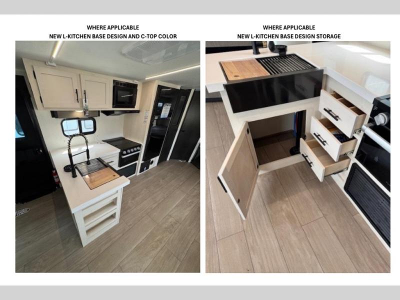 Looking for the perfect trailer for two with a spacious bathroom and bedroom? This Alpha Wolf provides a rear oversized bathroom complete with linen storage and a sliding door that saves space and looks great. The front bedroom includes a walk-around queen bed, dual wardrobes, a sliding door plus windows for natural lighting and great views. The main living and kitchen area is spacious as well with a large slide out that includes theater seating with a removable table across from the entertainment center with a fireplace, a 12V residential style refrigerator for lots of cold storage, and a pantry for your snacks and dry goods. You can decide to cook indoors on the three burner cooktop, or head outdoors to cook on the outside kitchen!
