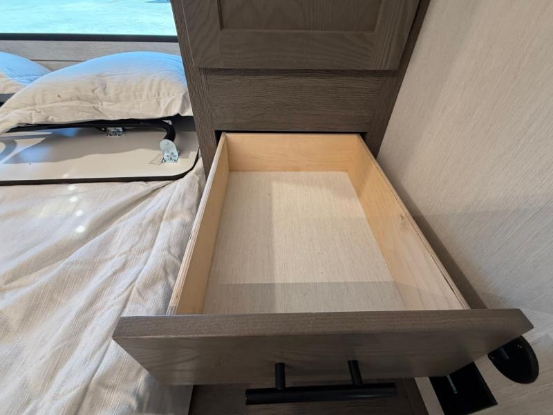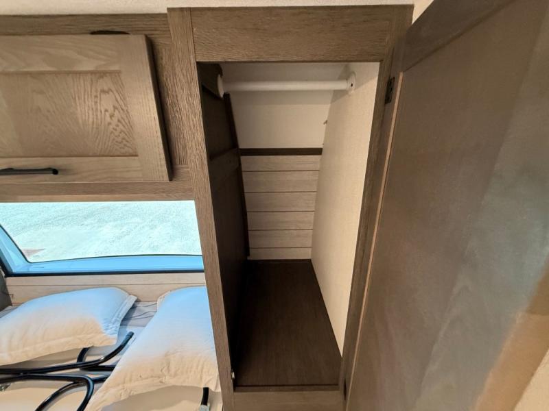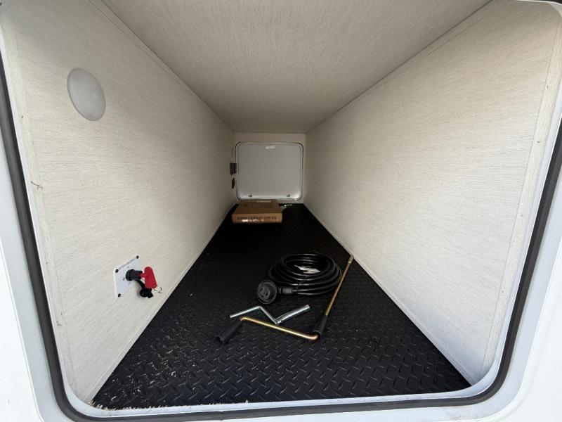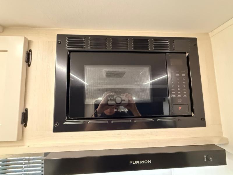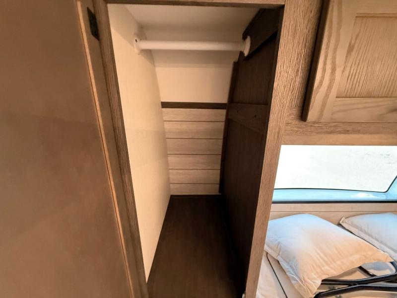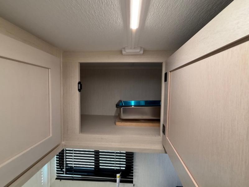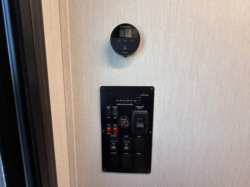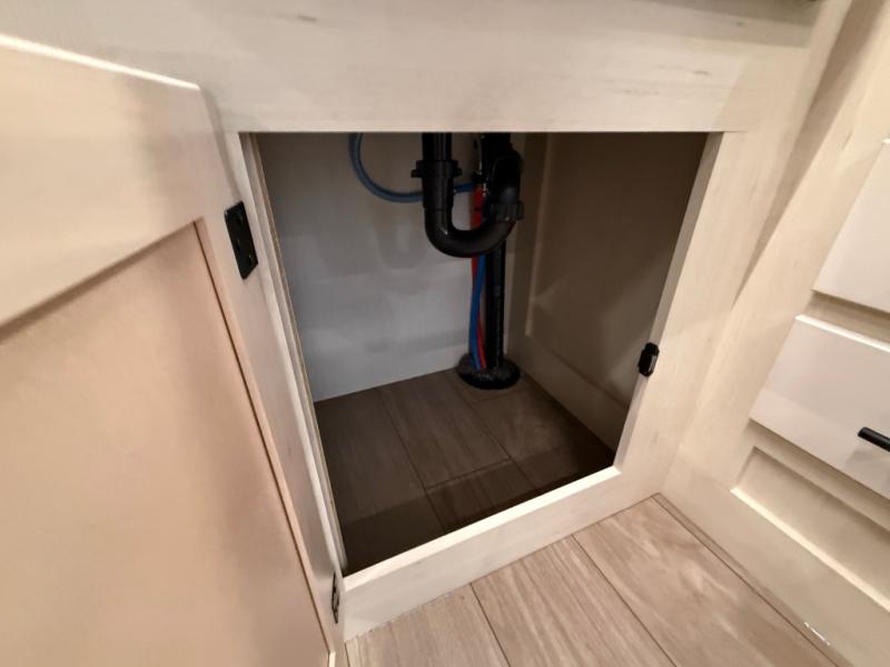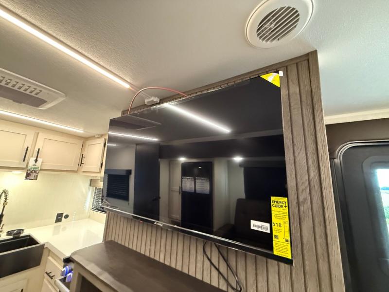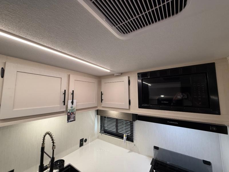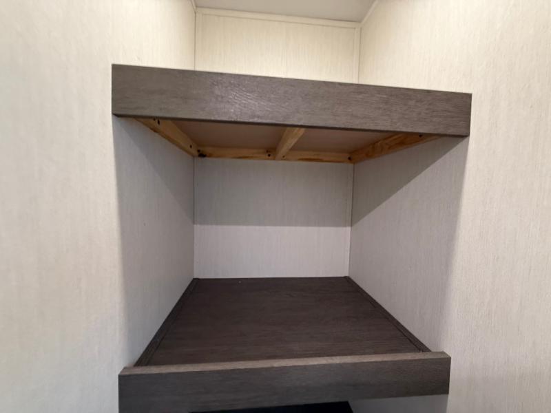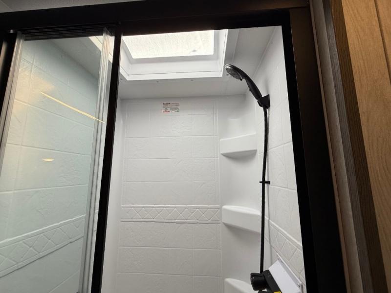 Looking for the perfect trailer for two with a spacious bathroom and bedroom? This Alpha Wolf provides a rear oversized bathroom complete with linen storage and a sliding door that saves space and looks great. The front bedroom includes a walk-around queen bed, dual wardrobes, a sliding door plus windows for natural lighting and great views. The main living and kitchen area is spacious as well with a large slide out that includes theater seating with a removable table across from the entertainment center with a fireplace, a 12V residential style refrigerator for lots of cold storage, and a pantry for your snacks and dry goods. You can decide to cook indoors on the three burner cooktop, or head outdoors to cook on the outside kitchen!