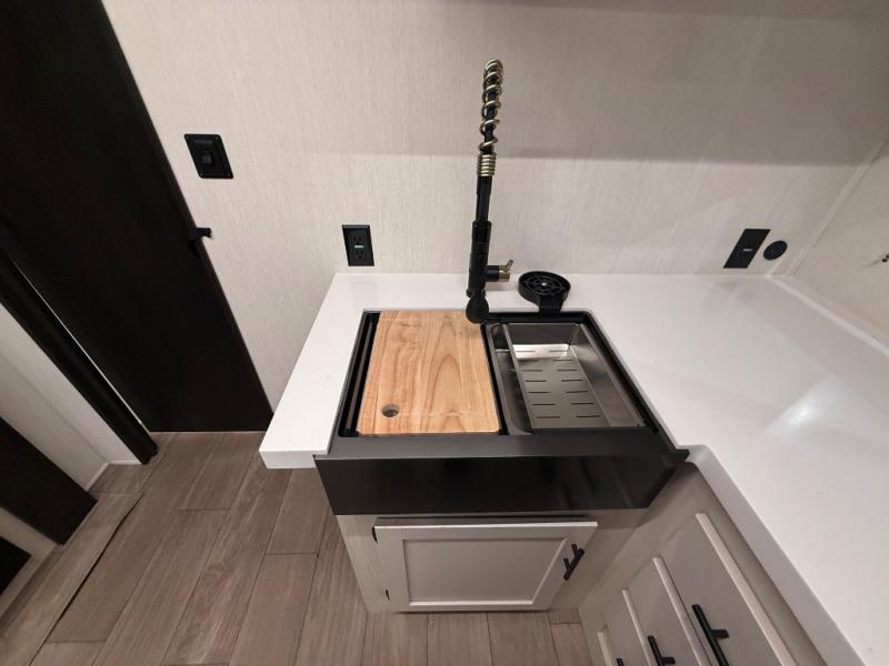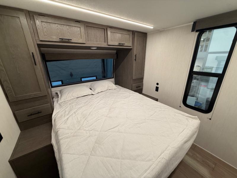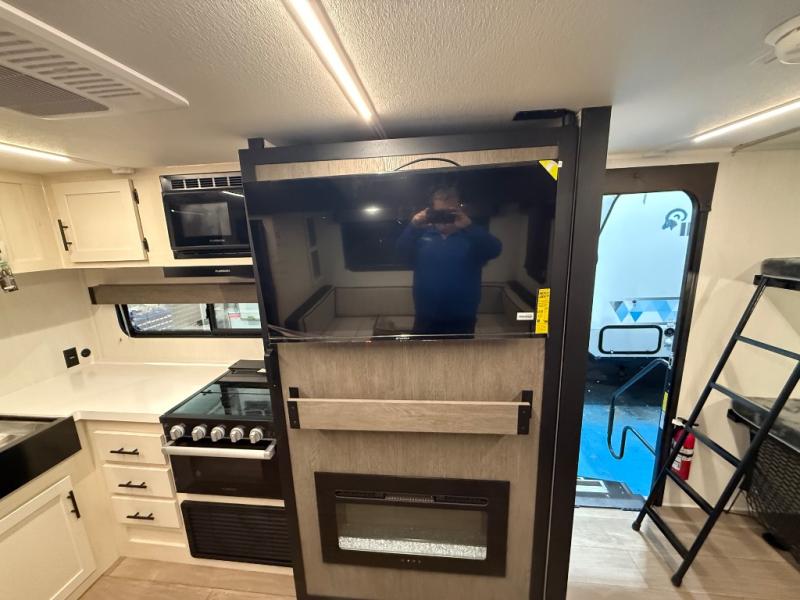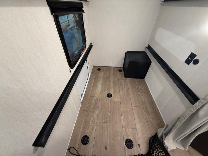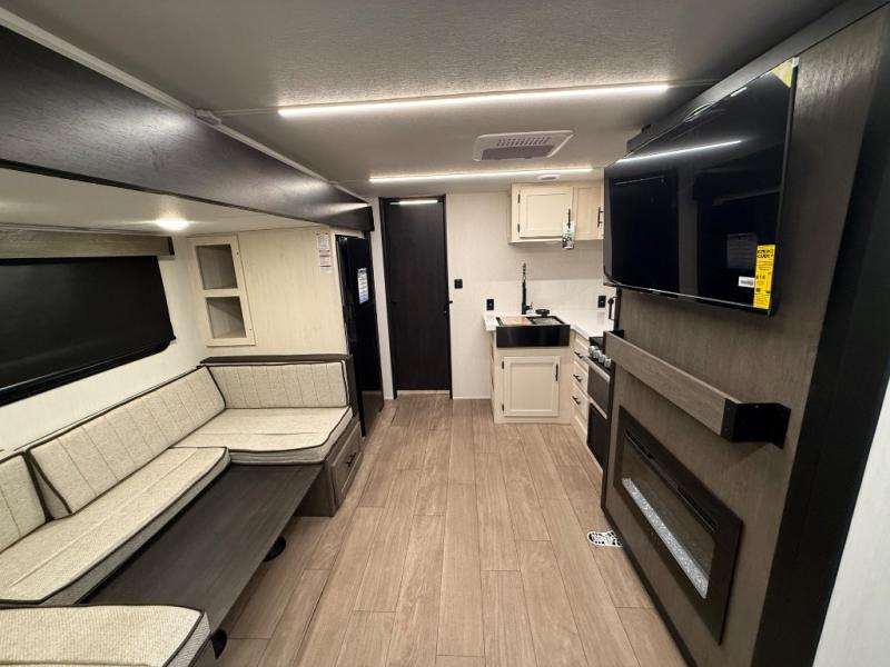 Make your dream of adventure a reality! This incredible travel trailer is perfect for creating lifelong memories with family and friends. The fun begins with the removable and stackable double-size bunk beds, ideal for kids or adults alike. The full bathroom provides convenience and comfort, making it easy to get ready for a day of exploration. The U-shaped dinette is a cozy spot for meals or relaxation while enjoying the amazing entertainment center. Plus, the kitchen area is equipped with a refrigerator, pantry storage, and microwave, making it easy to enjoy your favorite snacks and meals on the go. The 12V refrigerator keeps your food and drinks fresh, and the overhead cabinet provides additional storage for cookware and dishes.The front bedroom features a spacious queen bed, convenient nightstands, a stylish wardrobe, and overhead cabinets for storing your belongings and keeping everything organized.