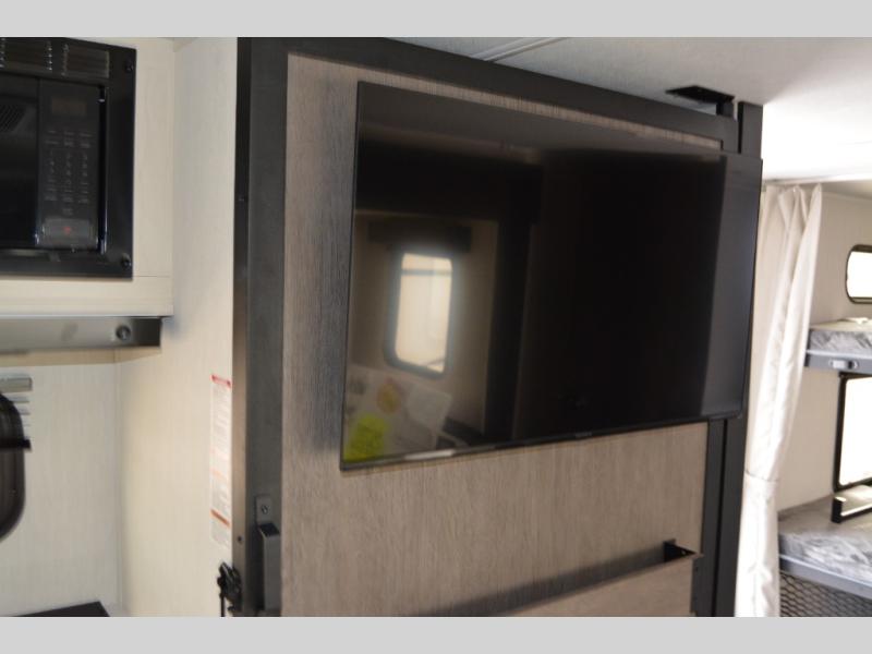Make your dream of adventure a reality! This incredible travel trailer is perfect for creating lifelong memories with family and friends. The fun begins with the removable and stackable double-size bunk beds, ideal for kids or adults alike. The full bathroom provides convenience and comfort, making it easy to get ready for a day of exploration. The U-shaped dinette is a cozy spot for meals or relaxation while enjoying the amazing entertainment center. Plus, the kitchen area is equipped with a refrigerator, pantry storage, and microwave, making it easy to enjoy your favorite snacks and meals on the go. The 12V refrigerator keeps your food and drinks fresh, and the overhead cabinet provides additional storage for cookware and dishes.The front bedroom features a spacious queen bed, convenient nightstands, a stylish wardrobe, and overhead cabinets for storing your belongings and keeping everything organized.