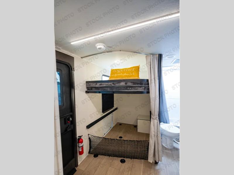 Make your dream of adventure a reality! This incredible travel trailer is perfect for creating lifelong memories with family and friends. The fun begins with the removable and stackable double-size bunk beds, ideal for kids or adults alike. The full bathroom provides convenience and comfort, making it easy to get ready for a day of exploration. The U-shaped dinette is a cozy spot for meals or relaxation while enjoying the amazing entertainment center. Plus, the kitchen area is equipped with a refrigerator, pantry storage, and microwave, making it easy to enjoy your favorite snacks and meals on the go. The 12V refrigerator keeps your food and drinks fresh, and the overhead cabinet provides additional storage for cookware and dishes.The front bedroom features a spacious queen bed, convenient nightstands, a stylish wardrobe, and overhead cabinets for storing your belongings and keeping everything organized.