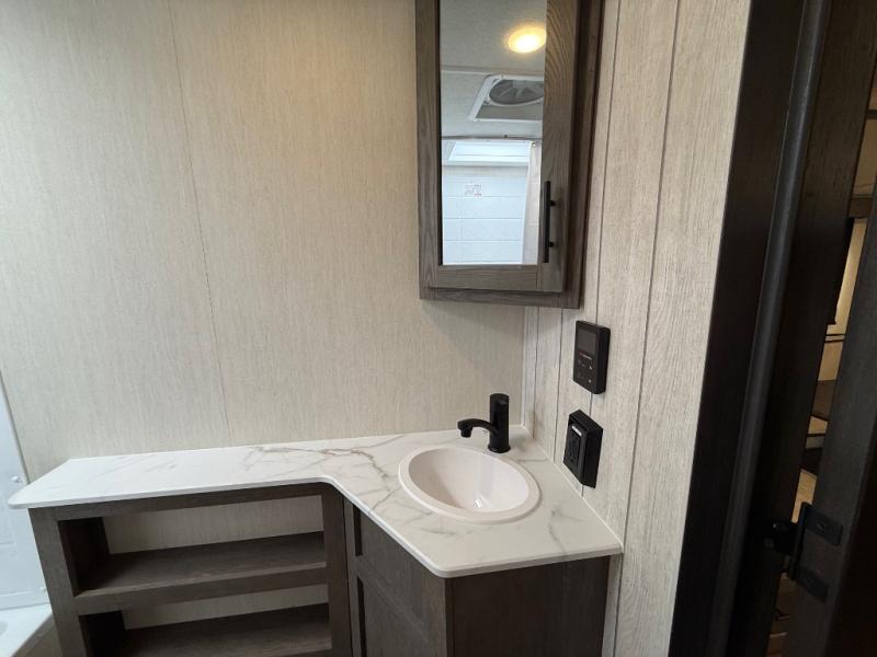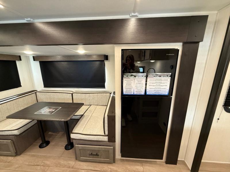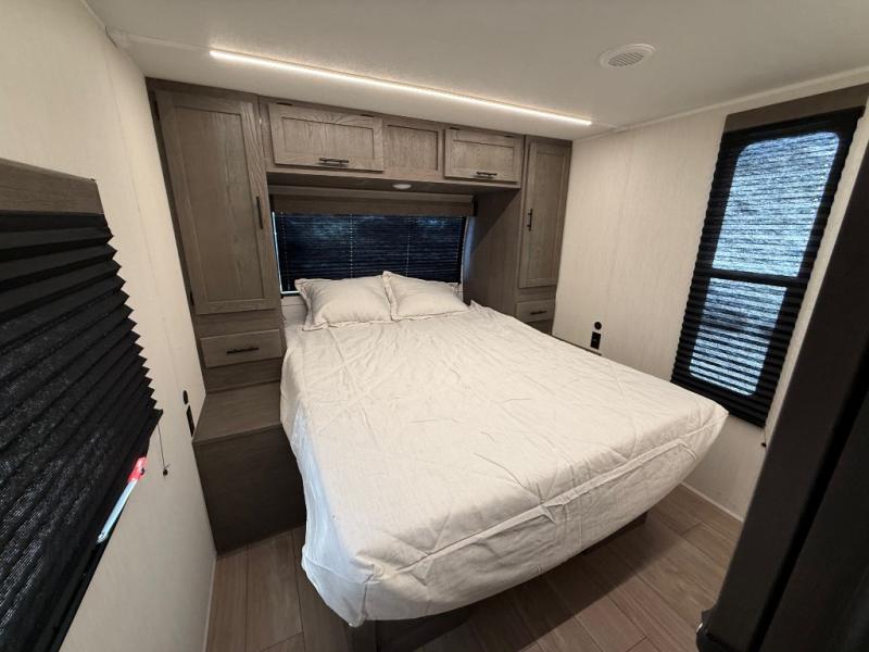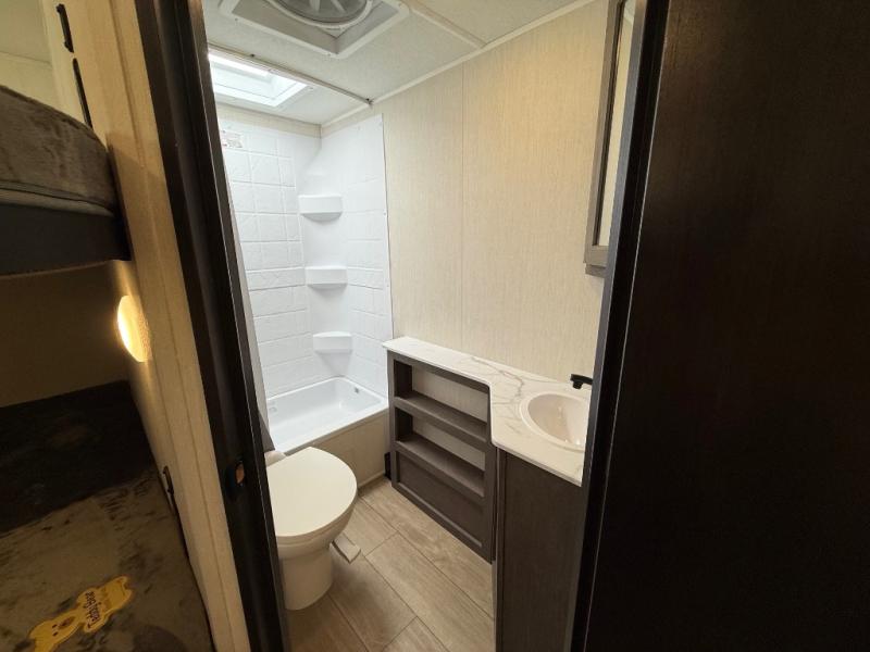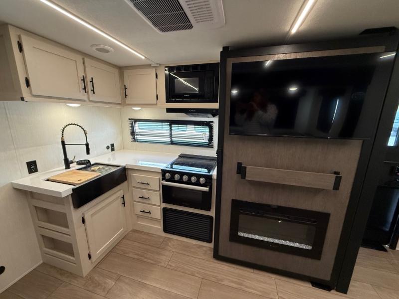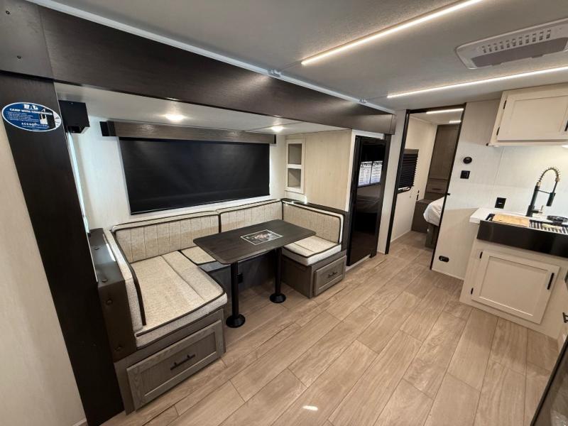 Make your dream of adventure a reality! This incredible travel trailer is perfect for creating lifelong memories with family and friends. The fun begins with the removable and stackable double-size bunk beds, ideal for kids or adults alike. The full bathroom provides convenience and comfort, making it easy to get ready for a day of exploration. The U-shaped dinette is a cozy spot for meals or relaxation while enjoying the amazing entertainment center. Plus, the kitchen area is equipped with a refrigerator, pantry storage, and microwave, making it easy to enjoy your favorite snacks and meals on the go. The 12V refrigerator keeps your food and drinks fresh, and the overhead cabinet provides additional storage for cookware and dishes.The front bedroom features a spacious queen bed, convenient nightstands, a stylish wardrobe, and overhead cabinets for storing your belongings and keeping everything organized.