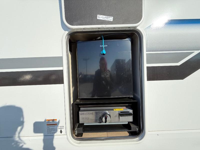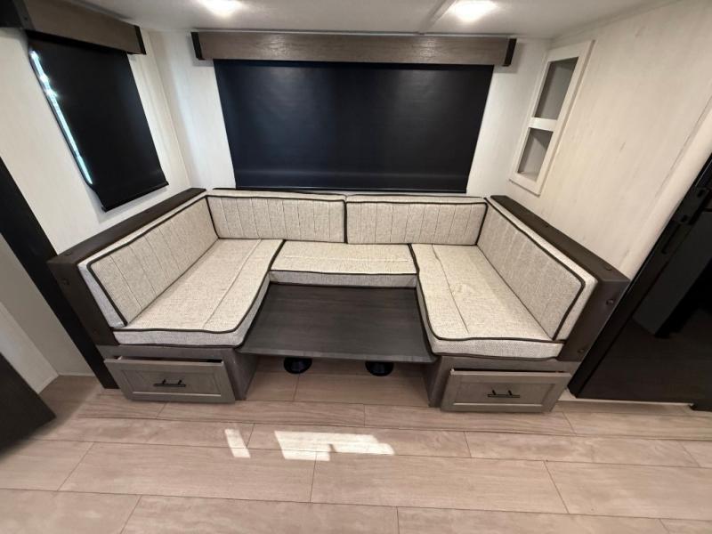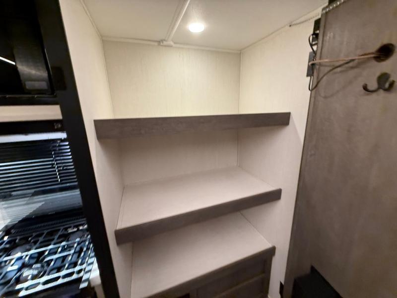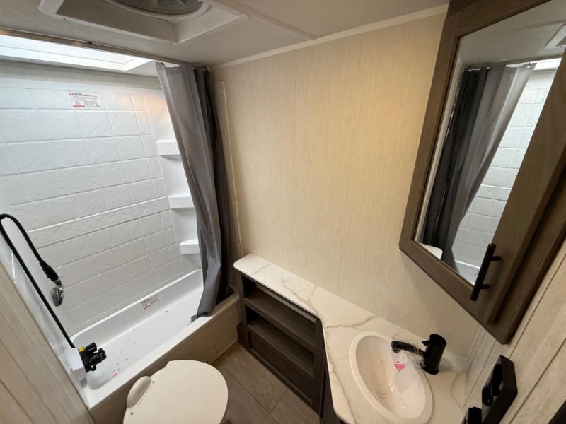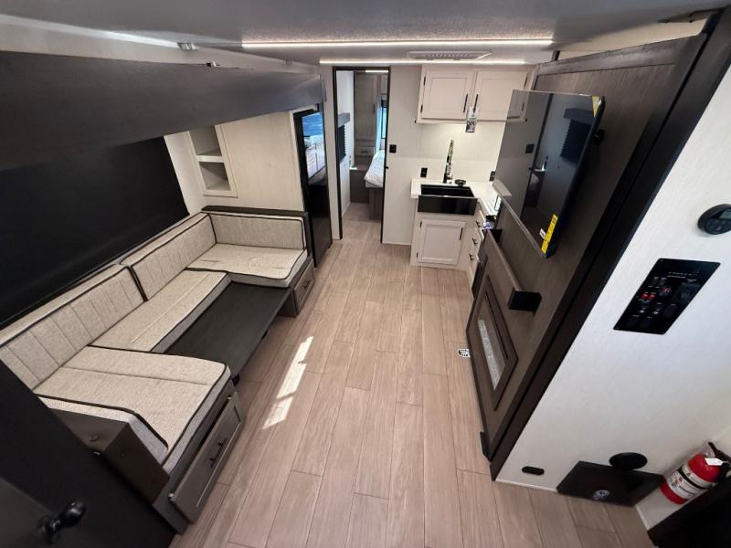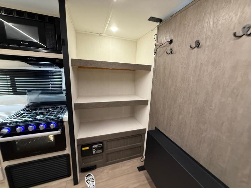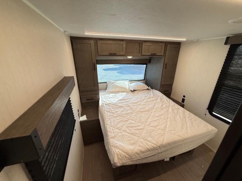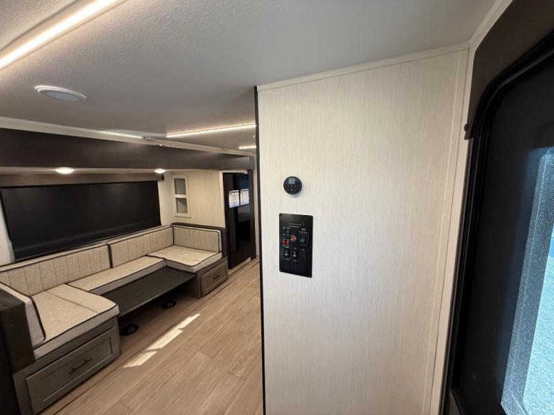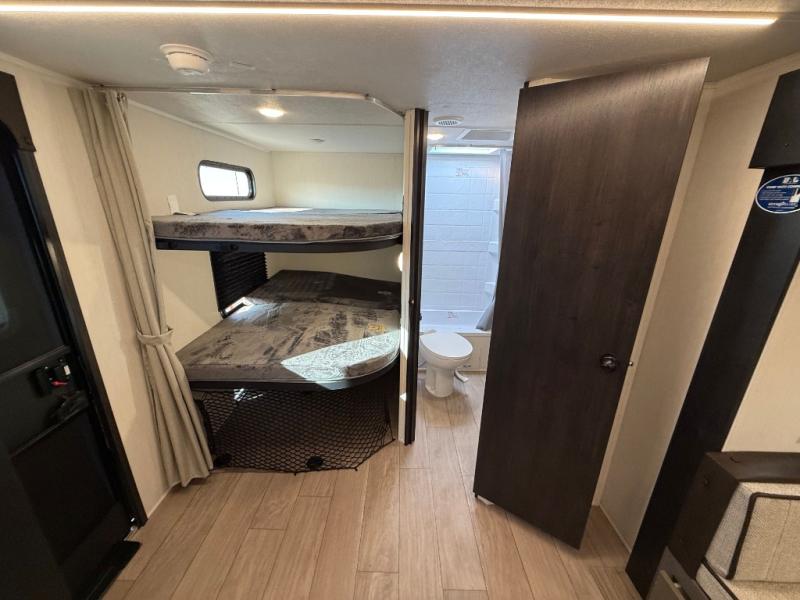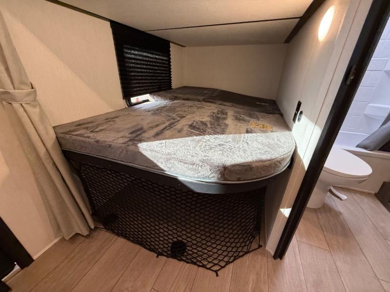 Make your dream of adventure a reality! This incredible travel trailer is perfect for creating lifelong memories with family and friends. The fun begins with the removable and stackable double-size bunk beds, ideal for kids or adults alike. The full bathroom provides convenience and comfort, making it easy to get ready for a day of exploration. The U-shaped dinette is a cozy spot for meals or relaxation while enjoying the amazing entertainment center. Plus, the kitchen area is equipped with a refrigerator, pantry storage, and microwave, making it easy to enjoy your favorite snacks and meals on the go. The 12V refrigerator keeps your food and drinks fresh, and the overhead cabinet provides additional storage for cookware and dishes.The front bedroom features a spacious queen bed, convenient nightstands, a stylish wardrobe, and overhead cabinets for storing your belongings and keeping everything organized.