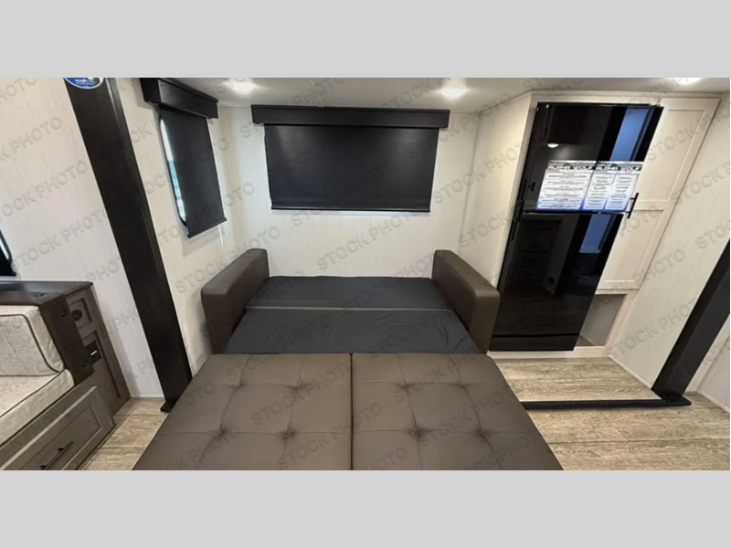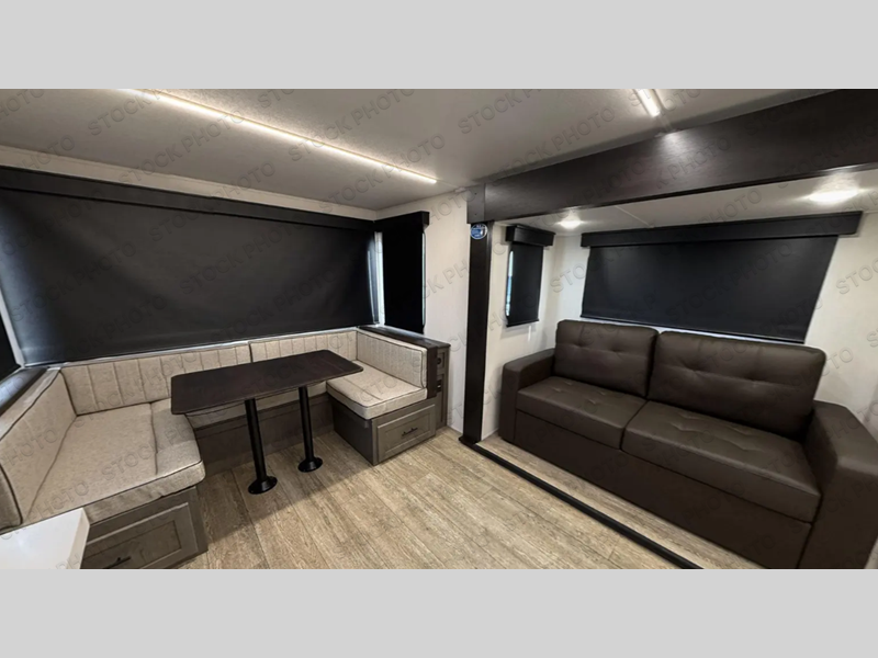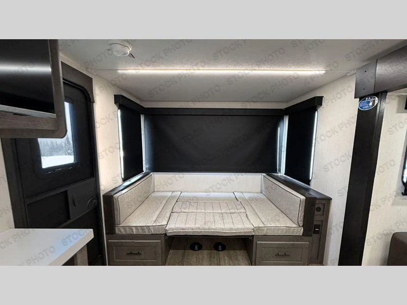 You will love all that this travel trailer has to offer! The rear living area includes a U-shaped dinette with a rear Pano-Vision window plus a tri-fold sofa across from the entertainment center with a fireplace. The kitchen has everything needed for food prep and serving, and the outside kitchen with ice and a refrigerator will be a favorite as well. The 20' awning will provide an outdoor living area; just grab your camping chairs from the outside storage areas. When you want to call it a night, fall quickly to sleep on the queen bed in the front bedroom with easy access to the walk-through bathroom, plus the bedroom has one of the dual entry doors to the unit.