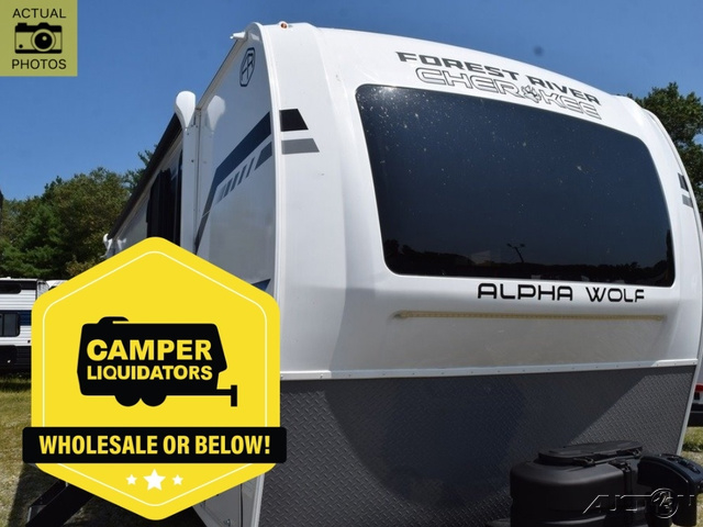 With any Cherokee Alpha Wolf travel trailer by Forest River you'll enjoy outstanding amenities, quality construction, and an affordable price. Each model features a "ToughBend" rigid skirt metal design, 5/8" tongue and groove plywood floor decking, and a "SuperTruss" roof structure that will hold up through years of camping memories. There is a pet friendly "clean sweep" floor design with no heat vents indoors, along with a super lumen lighting system, a 15,000 BTU quick cool central air conditioning, and many more comforts. There are many convenient exterior features such as, Leash Latch pet safety technology, an outside shower with hot and cold water, and exterior steps with oversized landing and quick release. The Weather Guard Package will add protection against the elements with an armored underbelly tank enclosure and forced air heat, thermo-control reflective safety glass windows, and upgraded laminated walls with block foam insulation!