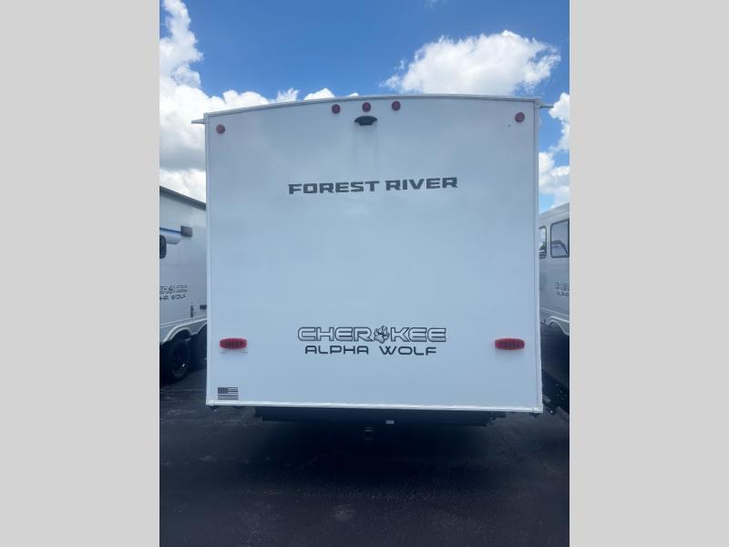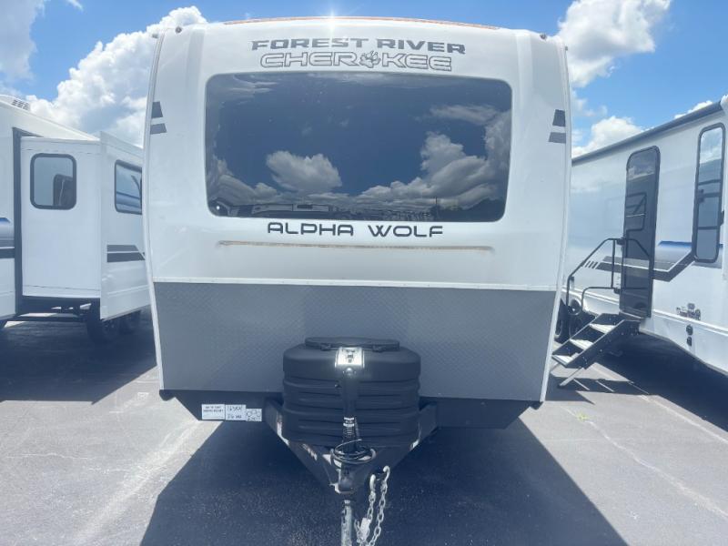 With any Cherokee Alpha Wolf travel trailer by Forest River you'll enjoy outstanding amenities, quality construction, and an affordable price. Each model features a "ToughBend" rigid skirt metal design, 5/8" tongue and groove plywood floor decking, and a "SuperTruss" roof structure that will hold up through years of camping memories. There is a pet friendly "clean sweep" floor design with no heat vents indoors, along with a super lumen lighting system, a 15,000 BTU quick cool central air conditioning, and many more comforts. There are many convenient exterior features such as, Leash Latch pet safety technology, an outside shower with hot and cold water, On The Go rear ladder prep, and exterior steps with oversized landing and quick release. The Weather Guard Package will add protection against the elements with an armored underbelly tank enclosure and forced air heat, thermo-control reflective safety glass windows, and upgraded laminated walls with block foam insulation!
