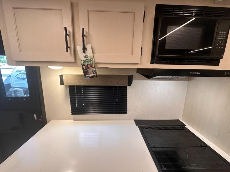 With any Cherokee Alpha Wolf travel trailer by Forest River you'll enjoy outstanding amenities, quality construction, and an affordable price. Each model features a "ToughBend" rigid skirt metal design, 5/8" tongue and groove plywood floor decking, and a "SuperTruss" roof structure that will hold up through years of camping memories. There is a pet friendly "clean sweep" floor design with no heat vents indoors, along with a super lumen lighting system, a 15,000 BTU quick cool central air conditioning, and many more comforts. There are many convenient exterior features such as, Leash Latch pet safety technology, an outside shower with hot and cold water, and exterior steps with oversized landing and quick release. The Weather Guard Package will add protection against the elements with an armored underbelly tank enclosure and forced air heat, thermo-control reflective safety glass windows, and upgraded laminated walls with block foam insulation!