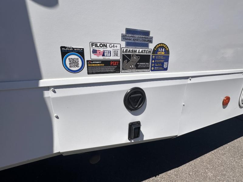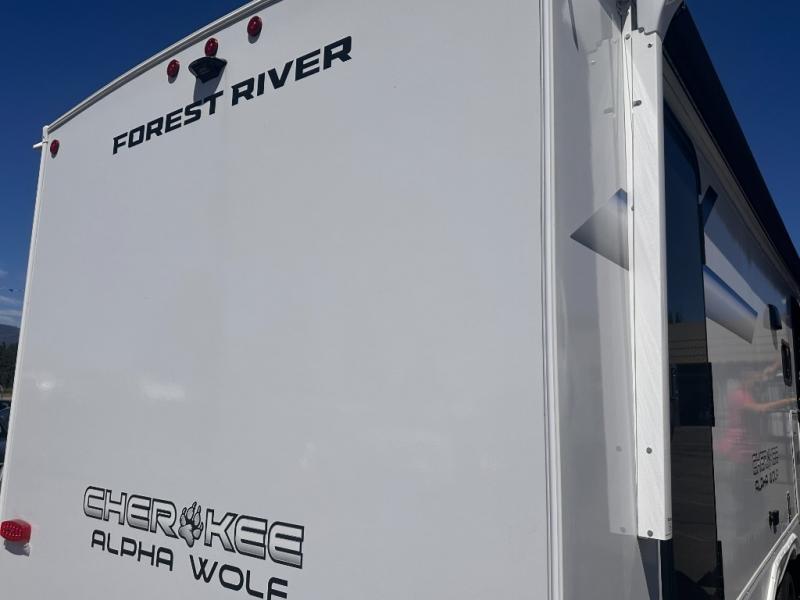 With any Cherokee Alpha Wolf travel trailer by Forest River you'll enjoy outstanding amenities, quality construction, and an affordable price. Each model features a "ToughBend" rigid skirt metal design, 5/8" tongue and groove plywood floor decking, and a "SuperTruss" roof structure that will hold up through years of camping memories. There is a pet friendly "clean sweep" floor design with no heat vents indoors, along with a super lumen lighting system, a 15,000 BTU quick cool central air conditioning, and many more comforts. There are many convenient exterior features such as, Leash Latch pet safety technology, an outside shower with hot and cold water, and exterior steps with oversized landing and quick release. The Weather Guard Package will add protection against the elements with an armored underbelly tank enclosure and forced air heat, thermo-control reflective safety glass windows, and upgraded laminated walls with block foam insulation!