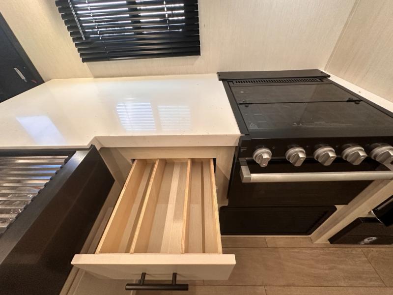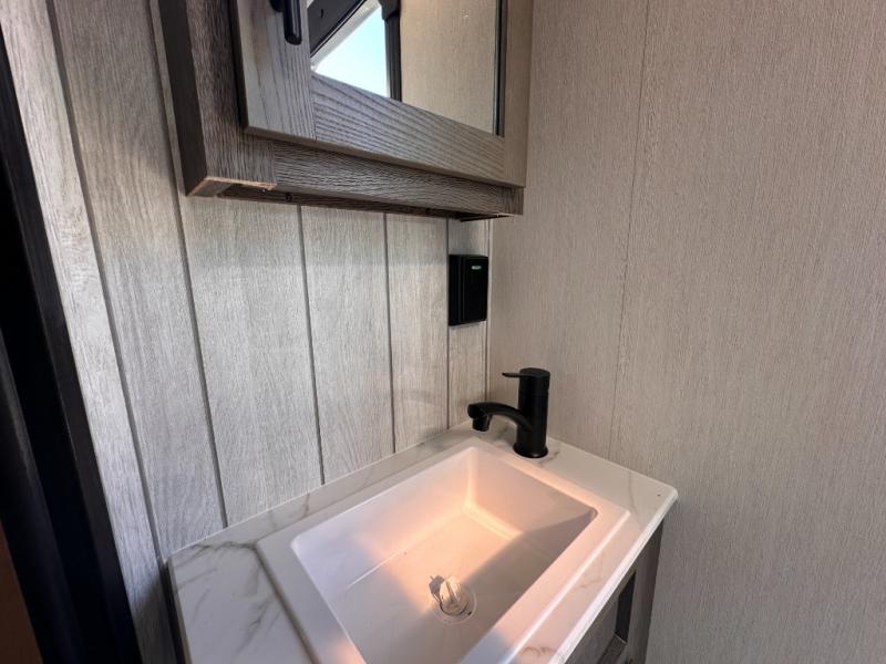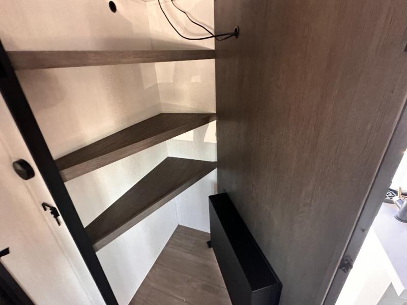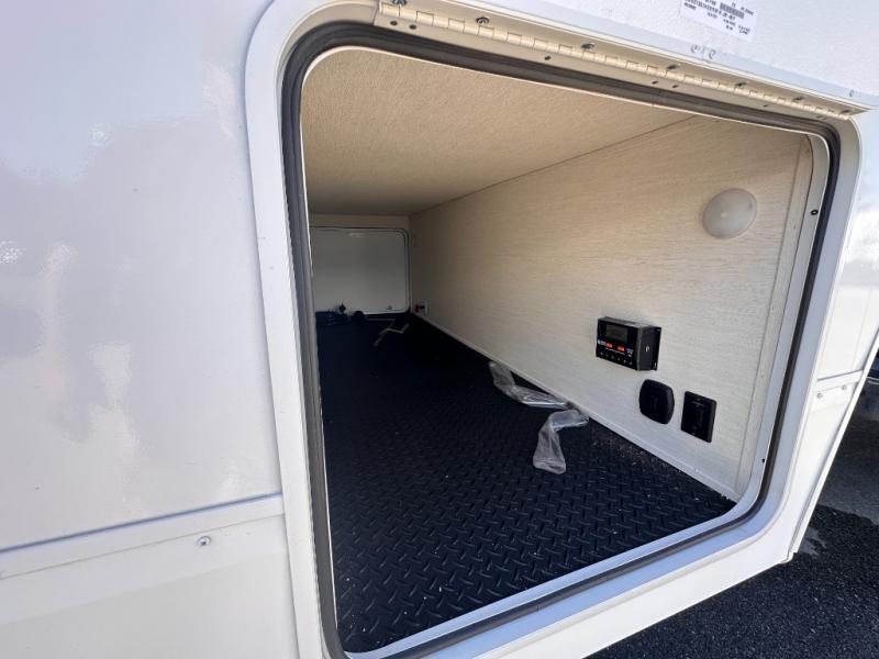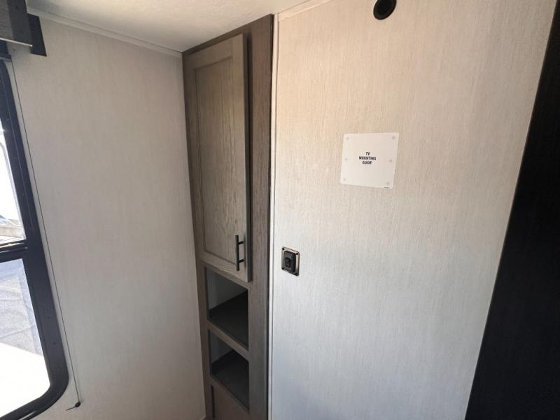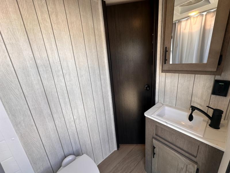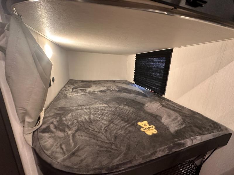 Looking for a multi-sleeper trailer to sleep nine to ten happy campers? You've found it in this dual entry model with an outside kitchen, double-size bunks, and a large slide out! The main living and kitchen area has a U-shaped dinette to utilize as a dining table, game table, work station, and/or an extra sleeping space. You will also find a hidden pantry behind the entertainment center and full kitchen amenities including a large sink and a residential-style refrigerator. The exterior provides a 20' awning for an outdoor living area, outside storage, plus large steps with oversized landing and quick release for convenience. You will also appreciate the Juice Pack that comes with a 100W solar panel, a battery, a 30 AMP solar charger, and more!