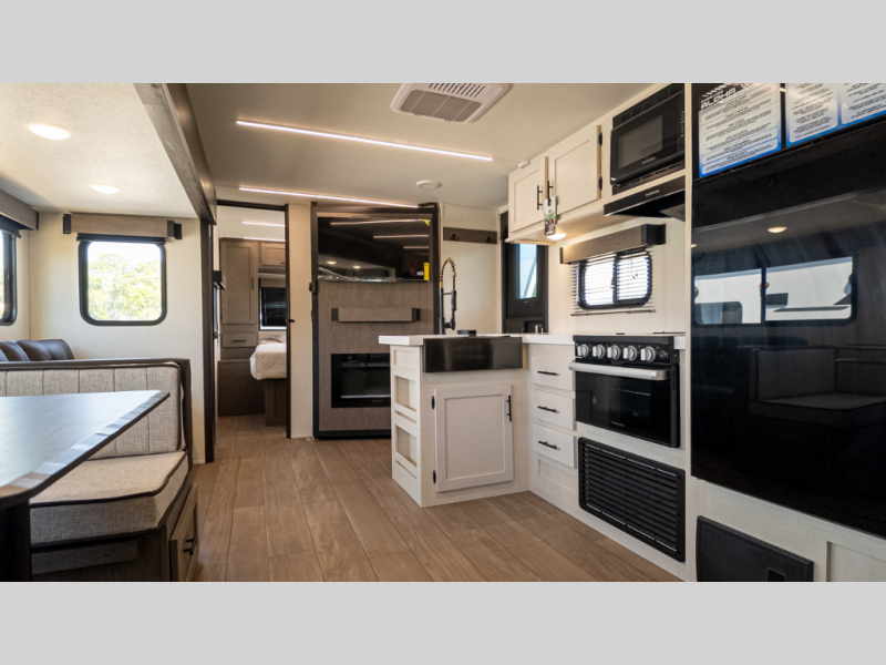 Compared to similar bunk trailers like Jayco Jay Flight SLX or Keystone Springdale, the Alpha Wolf 26DBH-L gives you residential-style kitchen features, a slide-out dinette, and more insulation without exceeding Michigan tow limits.