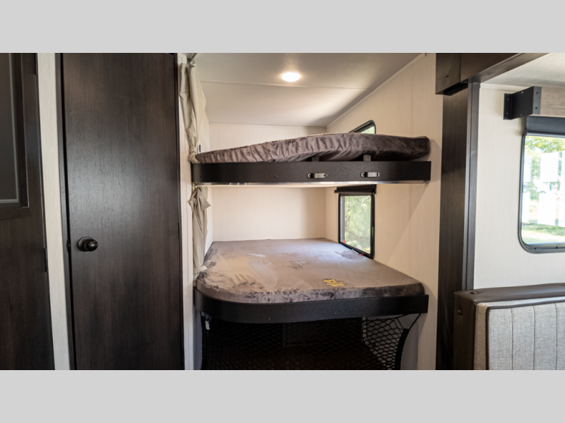 Ideal for Michigan families, this compact bunkhouse delivers serious sleeping capacity and comfort in a smart, tow-light footprint. Ready for campground tight spaces and weekend missions.