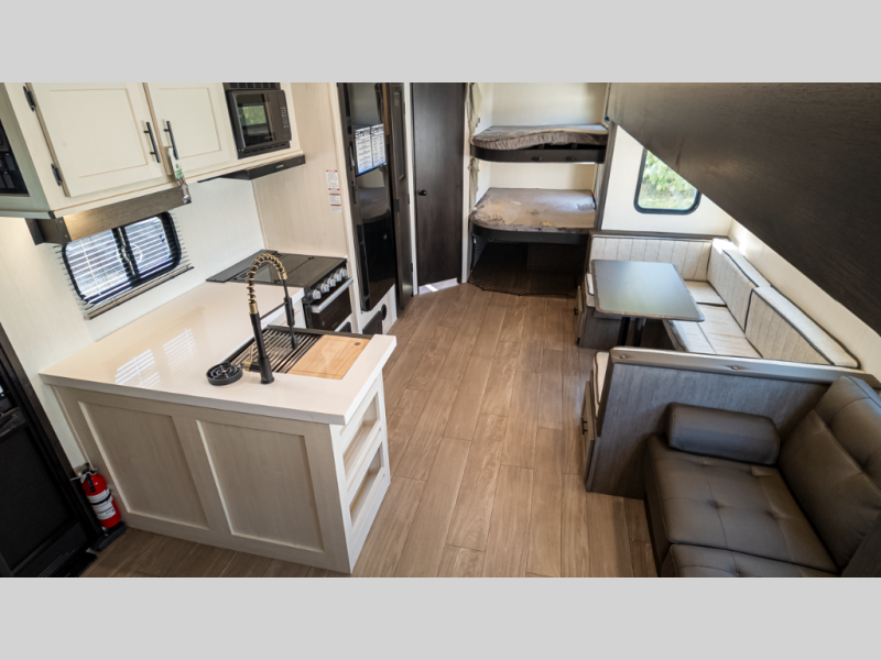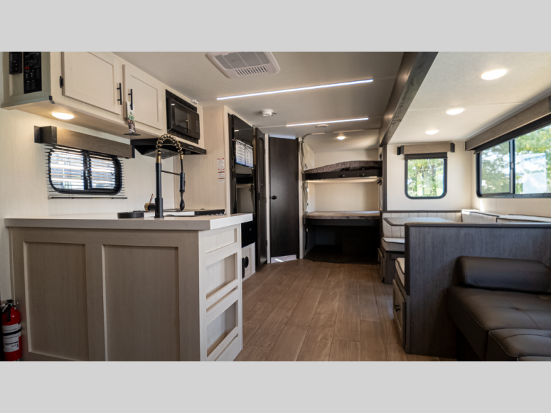 2026 Alpha Wolf 26DBH-L: Double bunks, U-dinette slide, kitchen, and full bath—built for family fun under 33 ft. Tour it today.