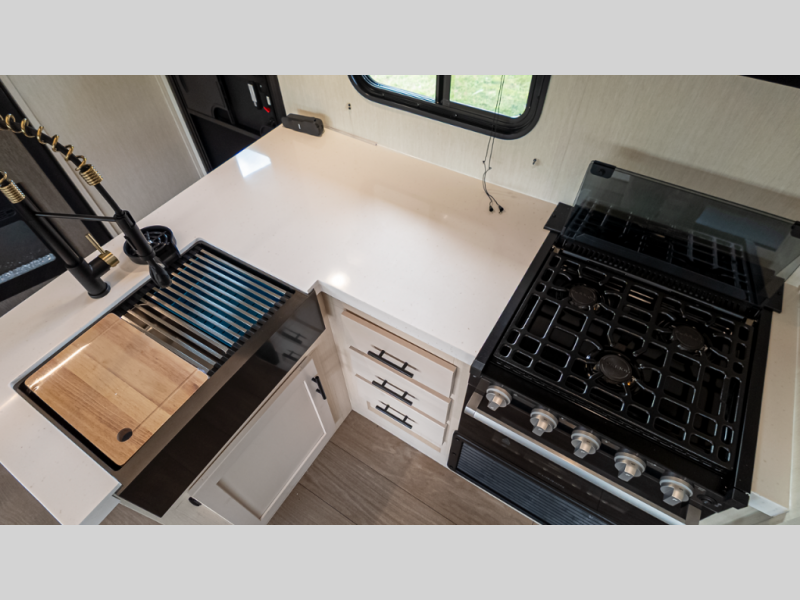 This layout is built to maximize sleeping & living zones without pushing you into a giant rig. You trade complexity for utility: one slide, twin bunks, queen bedroom, and a practical kitchen inside + out.