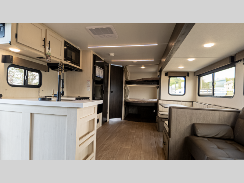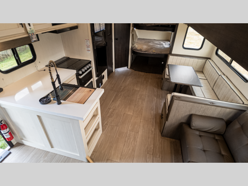 Why It’s Popular: Families love that the bunks and main bedroom let everyone retire without crashing on couches. Reviewers note the solid structure and usable features, plus the juice pack solar pre-wire.