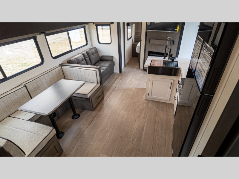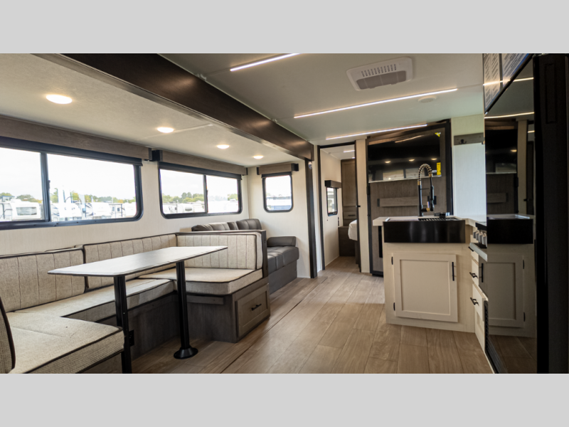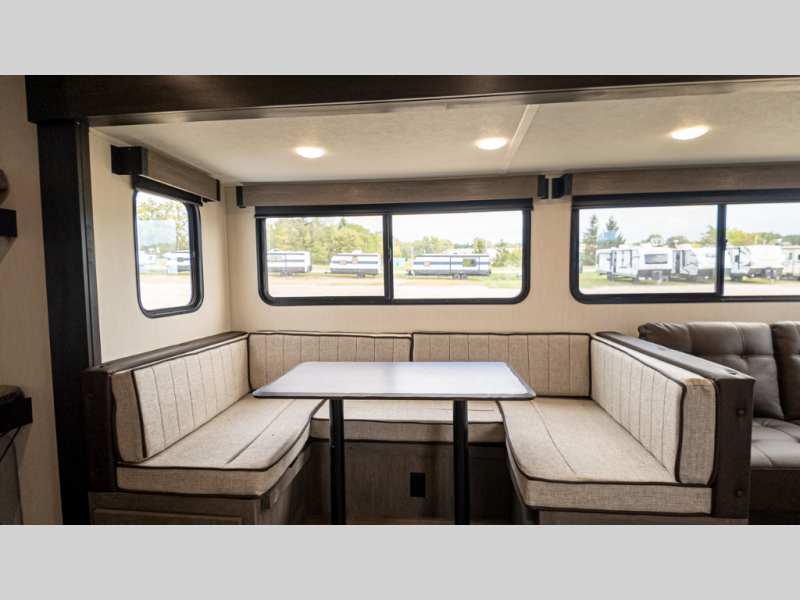 - U-dinette + sofa in slide offer multi-use zones for dining, gaming, or extra sleep