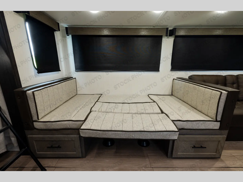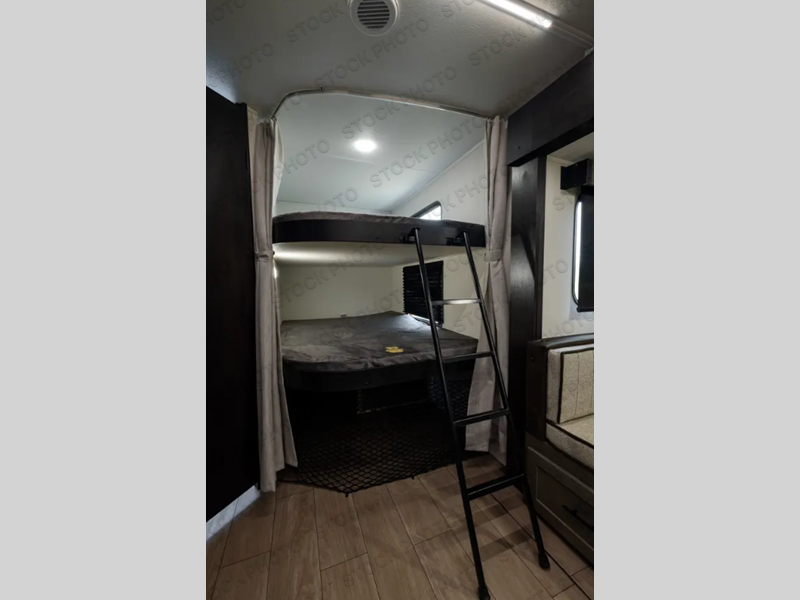 Looking for a multi-sleeper trailer to sleep nine to ten happy campers? You've found it in this dual entry model with an outside kitchen, double-size bunks, and a large slide out! The main living and kitchen area has a U-shaped dinette to utilize as a dining table, game table, work station, and/or an extra sleeping space. You will also find a hidden pantry behind the entertainment center and full kitchen amenities including a large sink and a residential-style refrigerator. The exterior provides a 20' awning for an outdoor living area, outside storage, plus large steps with oversized landing and quick release for convenience. You will also appreciate the Juice Pack that comes with a 100W solar panel, a battery, a 30 AMP solar charger, and more!