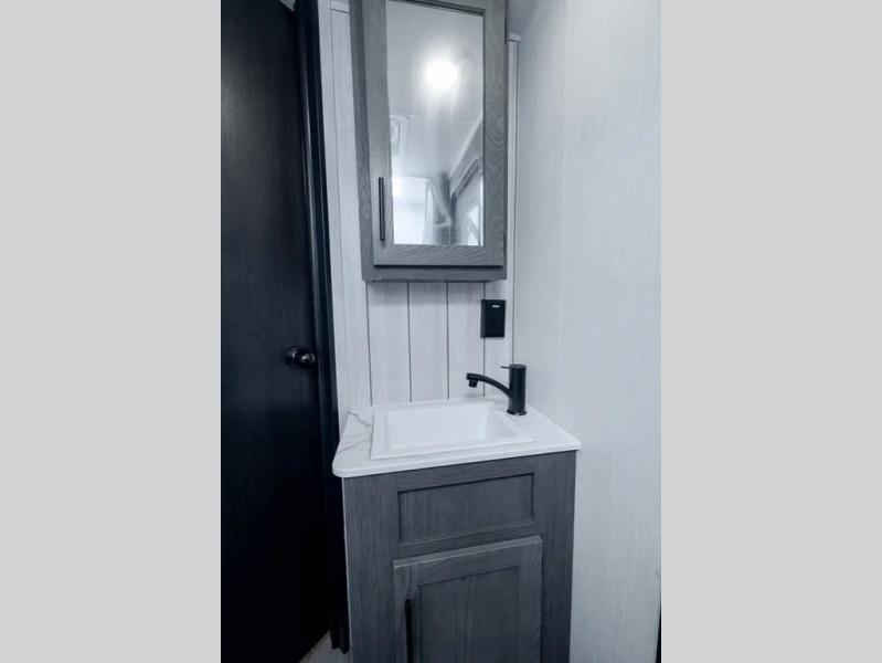 With any Cherokee Alpha Wolf travel trailer by Forest River, you'll enjoy outstanding amenities, quality construction, and an affordable price. Each model features a "ToughBend" rigid skirt metal design, 5/8" tongue and groove plywood floor decking, and a "SuperTruss" roof structure built for countless camping memories. There is a pet friendly "clean sweep" floor design with no heat vents indoors, along with a super lumen lighting system, a 15,000 BTU quick cool central air conditioning, and many more comforts. There are many convenient exterior features such as, Leash Latch pet safety technology, an outside shower with hot and cold water, and exterior steps with oversized landing and quick release. The Weather Guard Package will add protection against the elements with an armored underbelly tank enclosure and forced air heat, thermo-control reflective safety glass windows, and upgraded laminated exterior walls with block foam insulation!