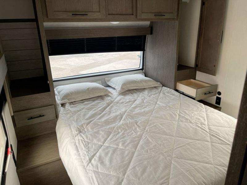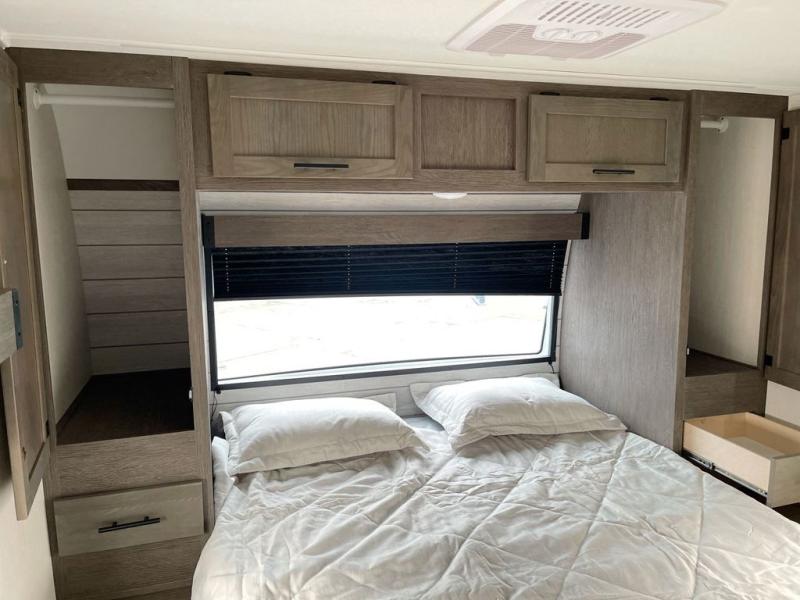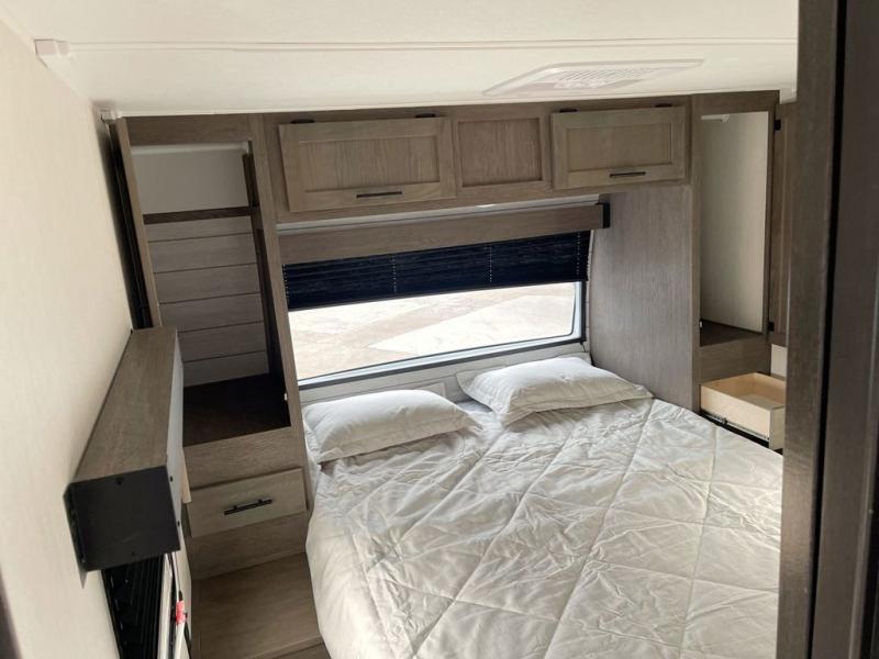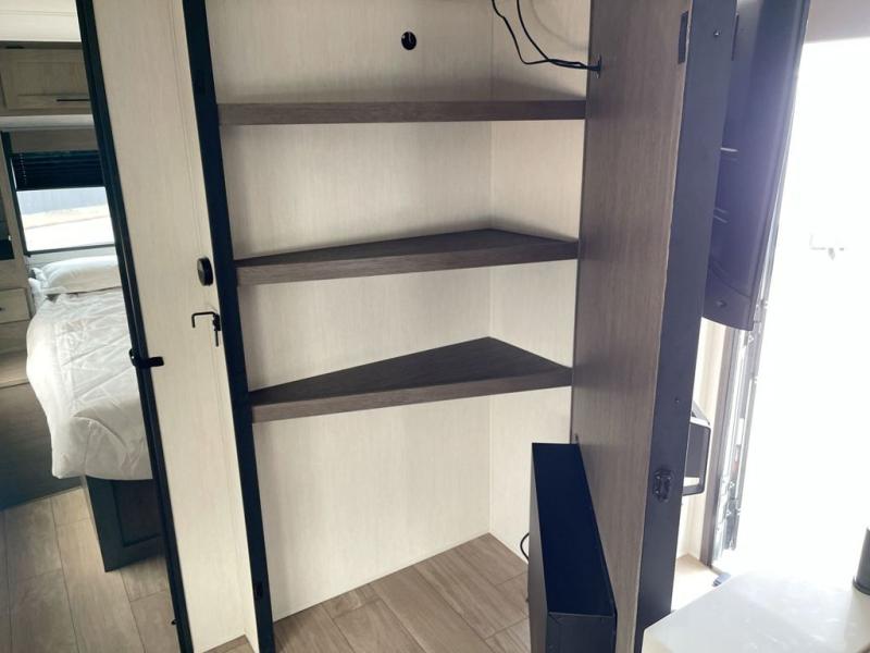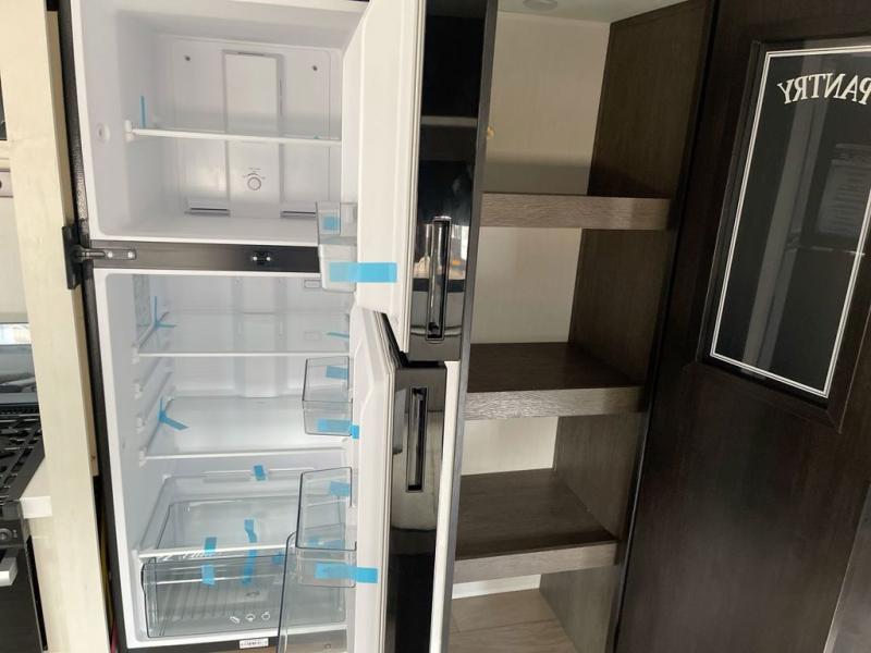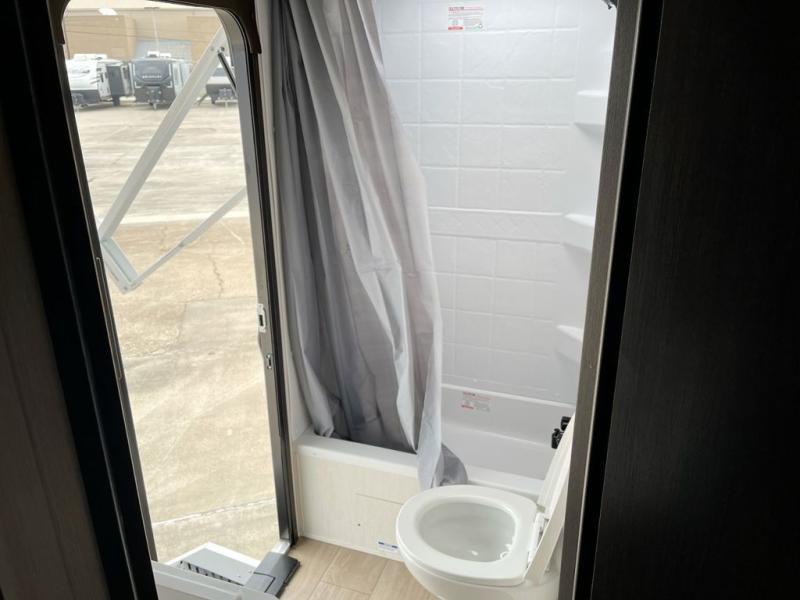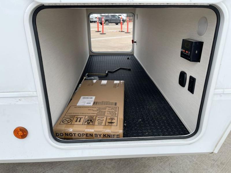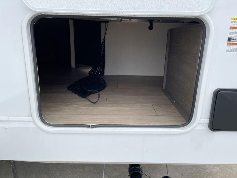 Looking for a multi-sleeper trailer to sleep up to nine campers? You've found it in this dual entry model with an outside kitchen, double-size bunks, and a large slide out! The main living and kitchen area has a U-shaped dinette to utilize as a dining table, game table, work station, and/or an extra sleeping space. You will also find a hidden pantry behind the entertainment center and full kitchen amenities including a large sink and a residential-style refrigerator. The exterior provides a 20' awning for an outdoor living area, outside storage, plus large steps with oversized landing and quick release for convenience. You will also appreciate the Juice Pack that comes with a 100W solar panel, a battery, a 30 AMP solar charger, and more!