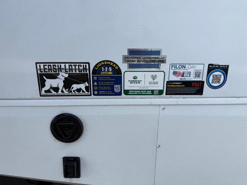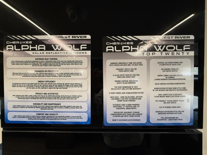 With any Cherokee Alpha Wolf travel trailer by Forest River, you'll enjoy outstanding amenities, quality construction, and an affordable price. Each model features a "ToughBend" rigid skirt metal design, 5/8" tongue and groove plywood floor decking, and a "SuperTruss" roof structure built for countless camping memories. There is a pet friendly "clean sweep" floor design with no heat vents indoors, along with a super lumen lighting system, a 15,000 BTU quick cool central air conditioning, and many more comforts. There are many convenient exterior features such as, Leash Latch pet safety technology, an outside shower with hot and cold water, and exterior steps with oversized landing and quick release. The Weather Guard Package will add protection against the elements with an armored underbelly tank enclosure and forced air heat, thermo-control reflective safety glass windows, and upgraded laminated exterior walls with block foam insulation!