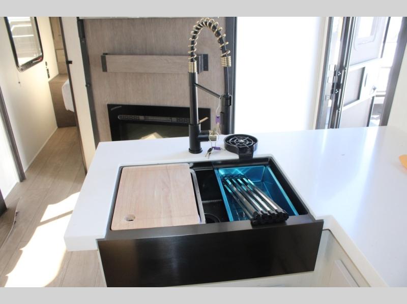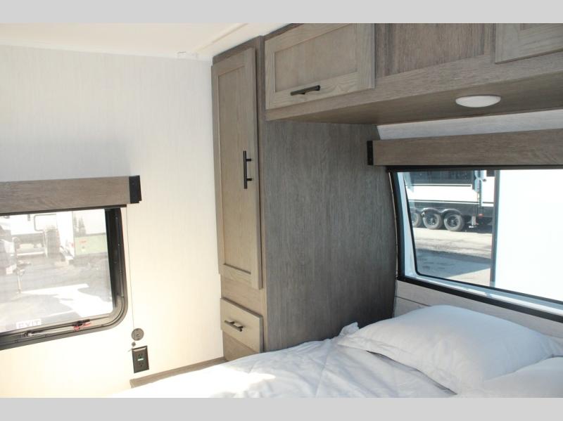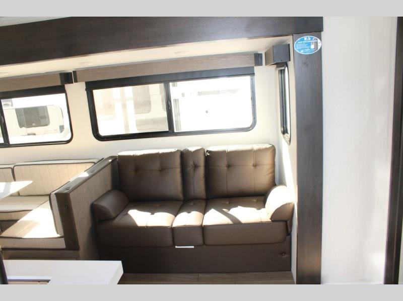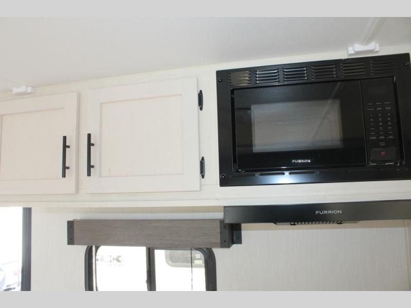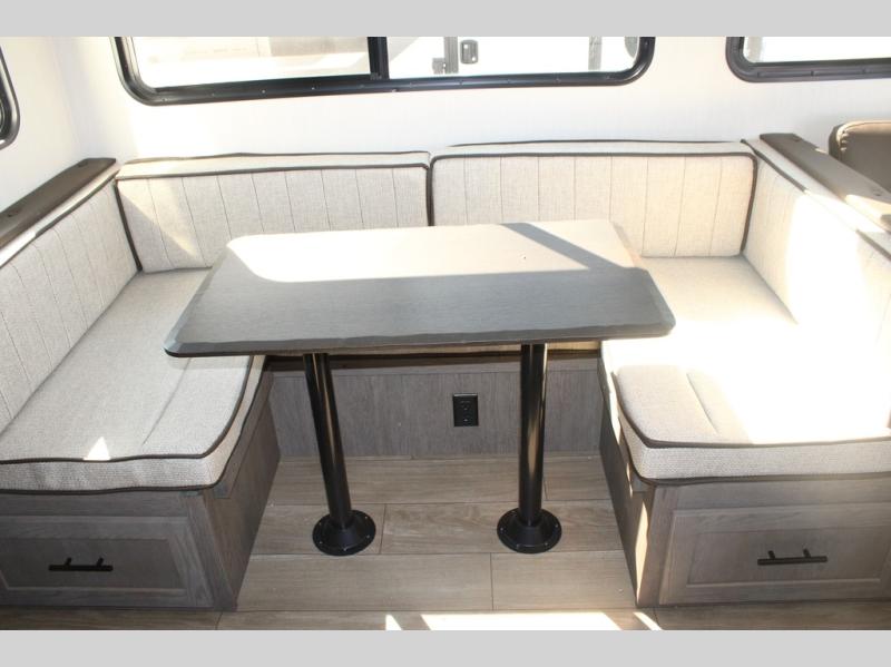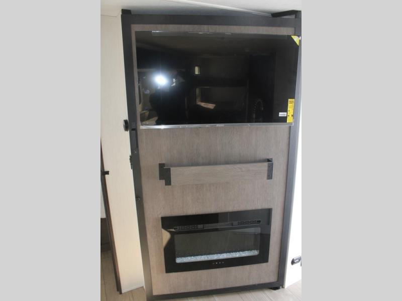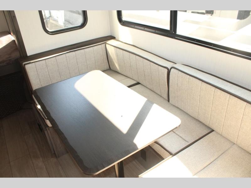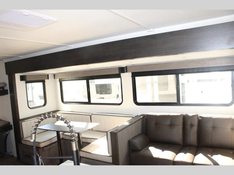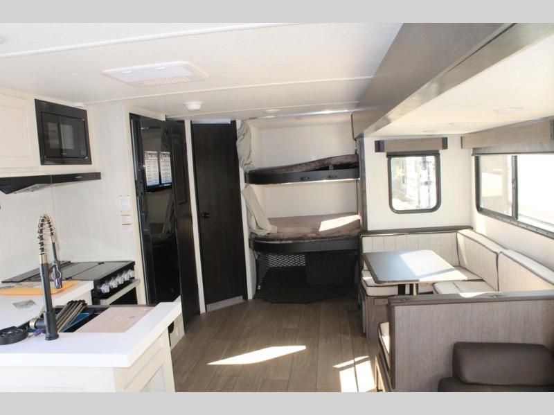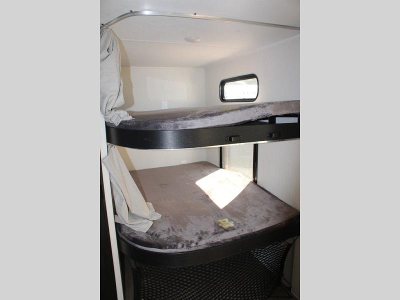 Looking for a multi-sleeper trailer to sleep nine to ten happy campers? You've found it in this dual entry model with an outside kitchen, double-size bunks, and a large slide out! The main living and kitchen area has a U-shaped dinette to utilize as a dining table, game table, work station, and/or an extra sleeping space. You will also find a hidden pantry behind the entertainment center and full kitchen amenities including a large sink and a residential-style refrigerator. The exterior provides a 20' awning for an outdoor living area, outside storage, plus large steps with oversized landing and quick release for convenience. You will also appreciate the Juice Pack that comes with a 100W solar panel, a battery, a 30 AMP solar charger, and more!