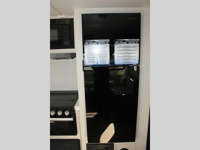 With any Cherokee Alpha Wolf travel trailer by Forest River you'll enjoy outstanding amenities, quality construction, and an affordable price. Each model features a "ToughBend" rigid skirt metal design, 5/8" tongue and groove plywood floor decking, and a "SuperTruss" roof structure that will hold up through years of camping memories. There is a pet friendly "clean sweep" floor design with no heat vents indoors, along with a super lumen lighting system, a 15,000 BTU quick cool central air conditioning, and many more comforts. There are many convenient exterior features such as, Leash Latch pet safety technology, an outside shower with hot and cold water, and exterior steps with oversized landing and quick release. The Weather Guard Package will add protection against the elements with an armored underbelly tank enclosure and forced air heat, thermo-control reflective safety glass windows, and upgraded laminated walls with block foam insulation!