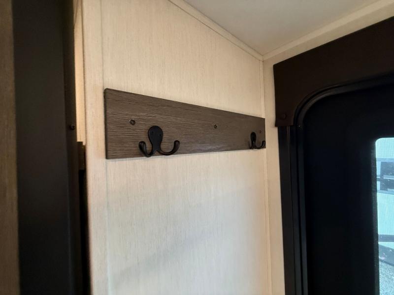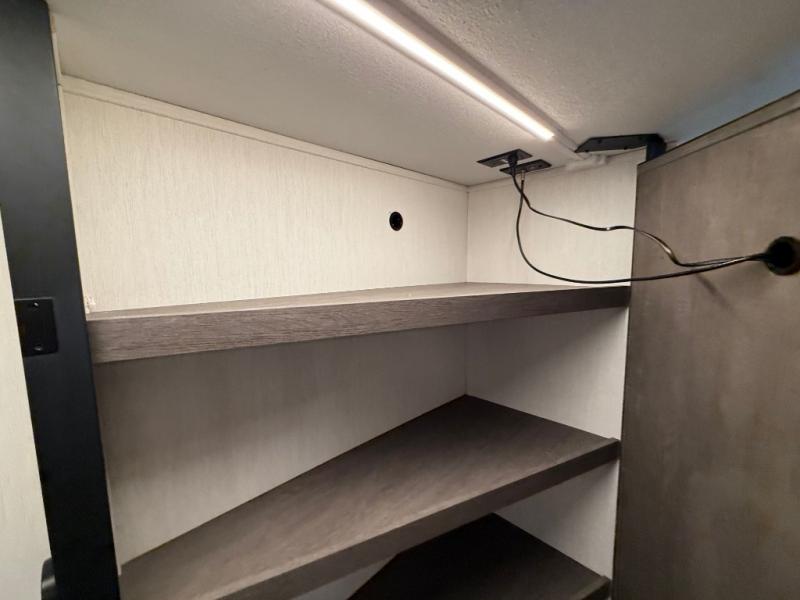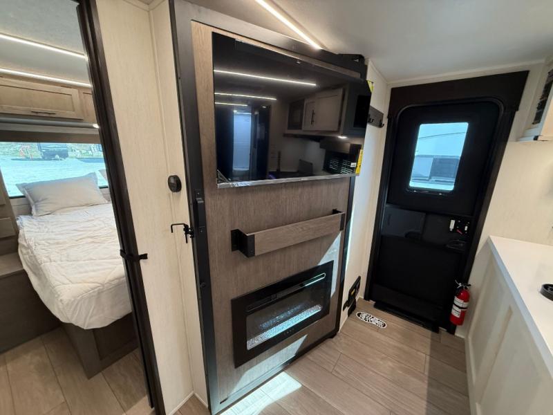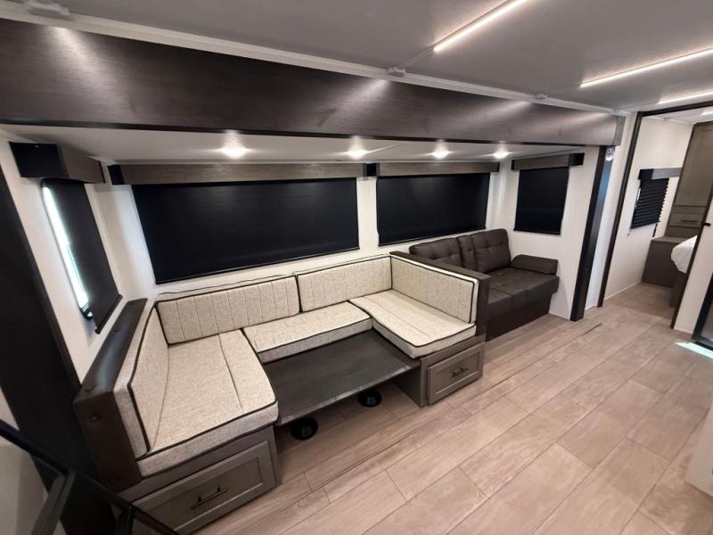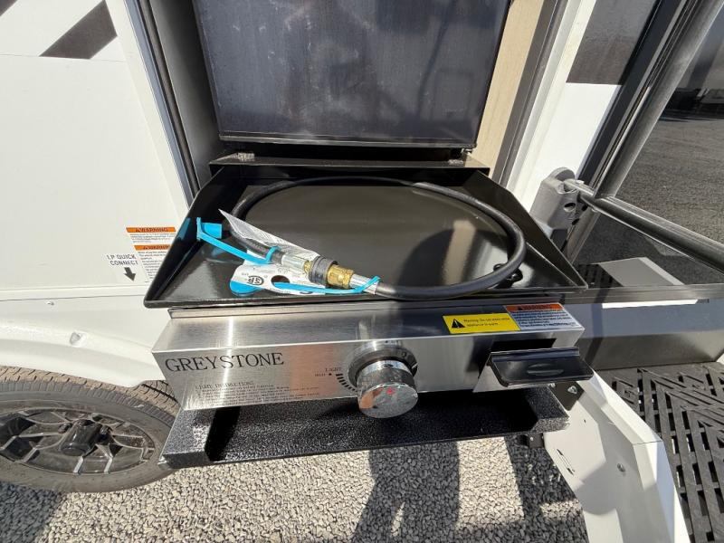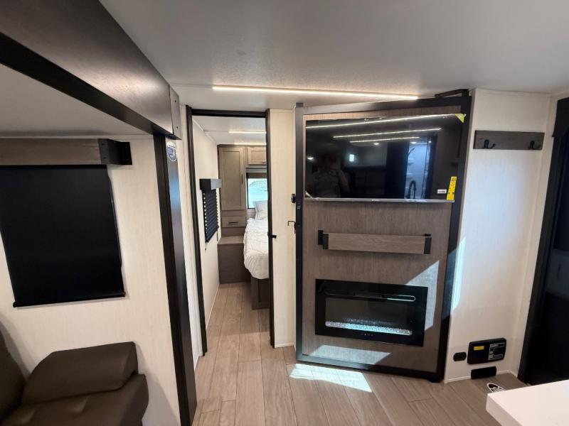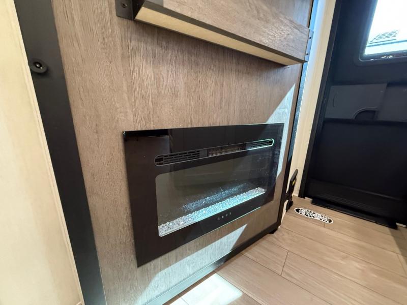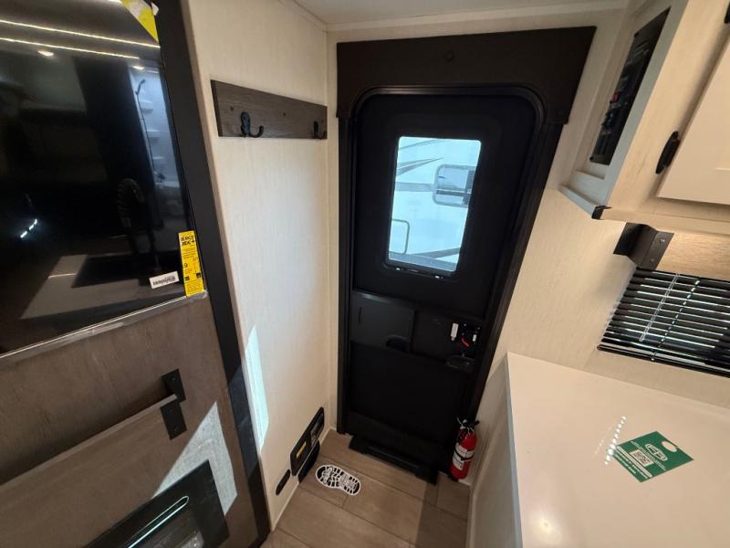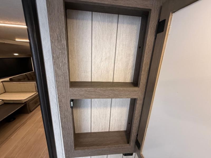 Looking for a multi-sleeper trailer to sleep nine to ten happy campers? You've found it in this dual entry model with an outside kitchen, double-size bunks, and a large slide out! The main living and kitchen area has a U-shaped dinette to utilize as a dining table, game table, work station, and/or an extra sleeping space. You will also find a hidden pantry behind the entertainment center and full kitchen amenities including a large sink and a residential-style refrigerator. The exterior provides a 20' awning for an outdoor living area, outside storage, plus large steps with oversized landing and quick release for convenience. You will also appreciate the Juice Pack that comes with a 100W solar panel, a battery, a 30 AMP solar charger, and more!