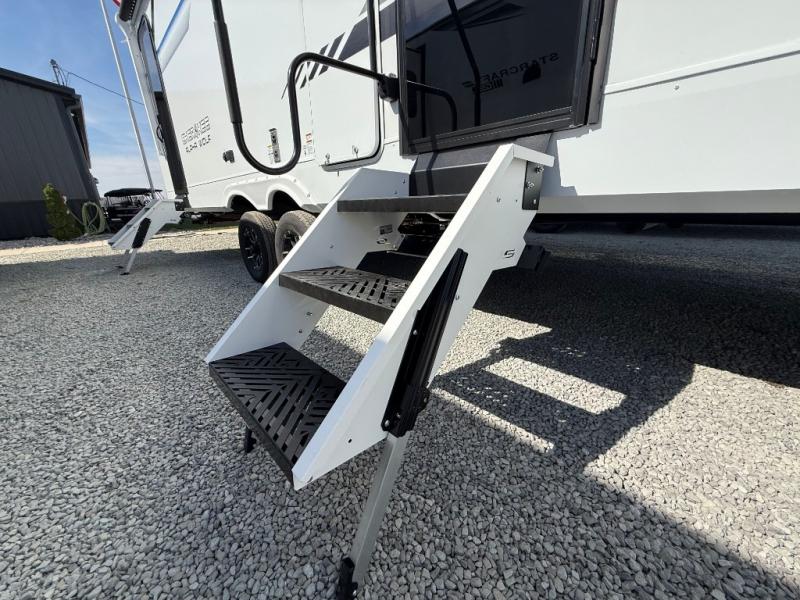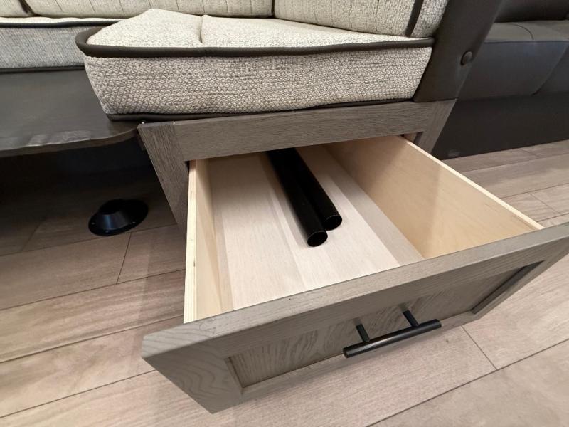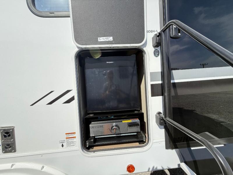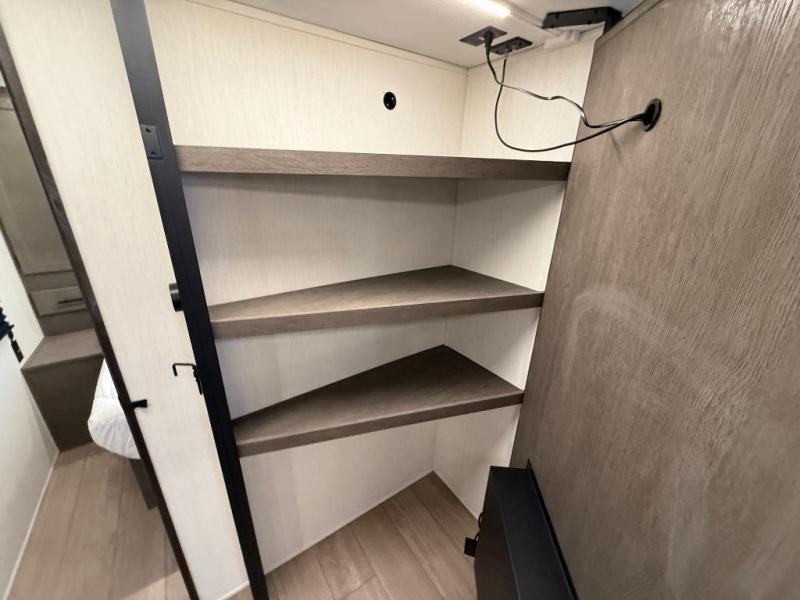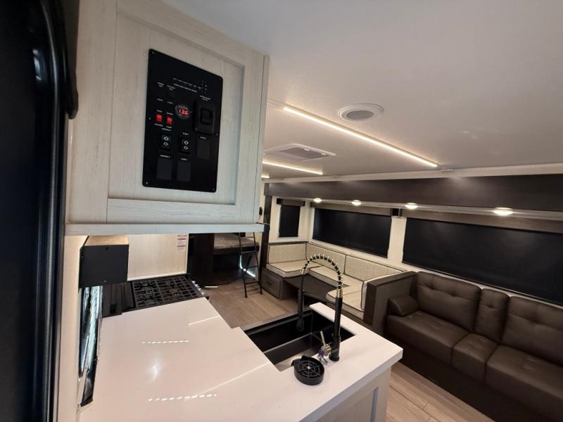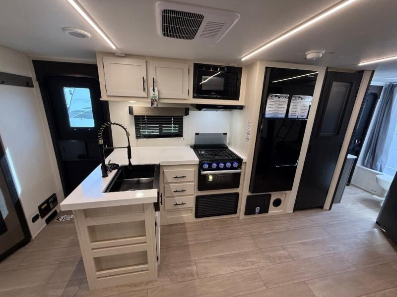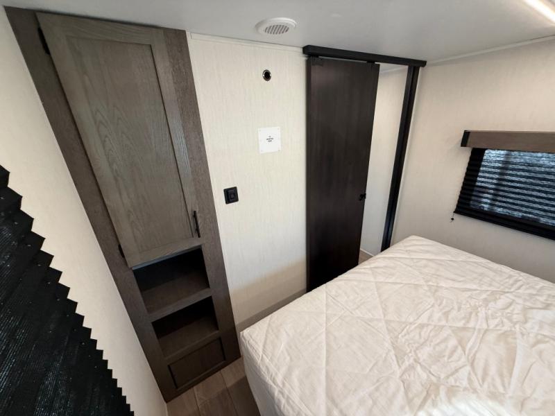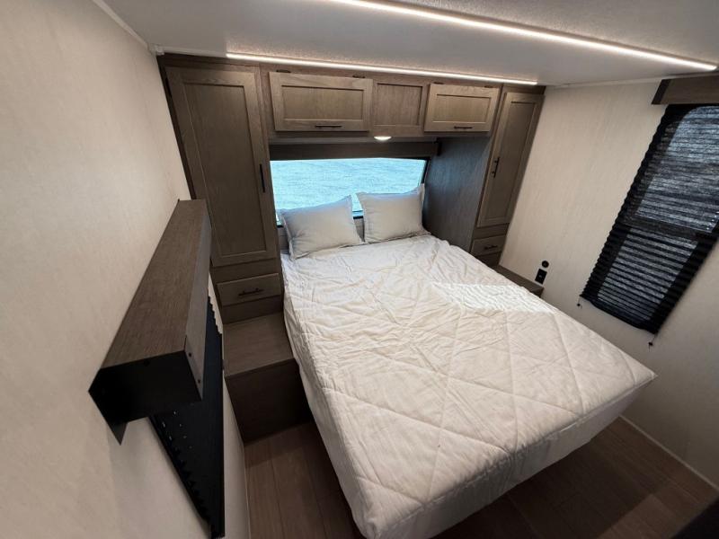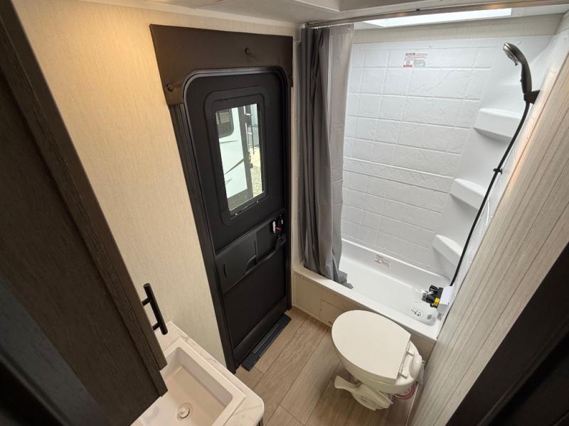 Looking for a multi-sleeper trailer to sleep nine to ten happy campers? You've found it in this dual entry model with an outside kitchen, double-size bunks, and a large slide out! The main living and kitchen area has a U-shaped dinette to utilize as a dining table, game table, work station, and/or an extra sleeping space. You will also find a hidden pantry behind the entertainment center and full kitchen amenities including a large sink and a residential-style refrigerator. The exterior provides a 20' awning for an outdoor living area, outside storage, plus large steps with oversized landing and quick release for convenience. You will also appreciate the Juice Pack that comes with a 100W solar panel, a battery, a 30 AMP solar charger, and more!