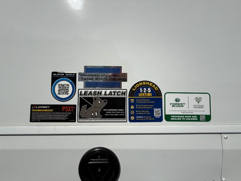 With any Cherokee Alpha Wolf travel trailer by Forest River you'll enjoy outstanding amenities, quality construction, and an affordable price. Each model features a "ToughBend" rigid skirt metal design, 5/8" tongue and groove plywood floor decking, and a "SuperTruss" roof structure that will hold up through years of camping memories. There is a pet friendly "clean sweep" floor design with no heat vents indoors, along with a super lumen lighting system, a 15,000 BTU quick cool central air conditioning, and many more comforts. There are many convenient exterior features such as, Leash Latch pet safety technology, an outside shower with hot and cold water, and exterior steps with oversized landing and quick release. The Weather Guard Package will add protection against the elements with an armored underbelly tank enclosure and forced air heat, thermo-control reflective safety glass windows, and upgraded laminated walls with block foam insulation!