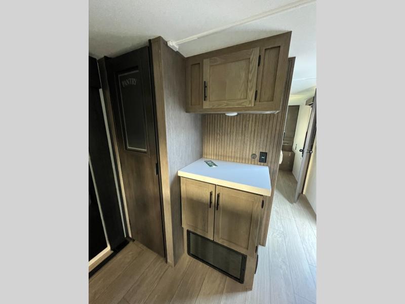 With any Cherokee Alpha Wolf travel trailer by Forest River you'll enjoy outstanding amenities, quality construction, and an affordable price. Each model features a "ToughBend" rigid skirt metal design, 5/8" tongue and groove plywood floor decking, and a "SuperTruss" roof structure that will hold up through years of camping memories. There is a pet friendly "clean sweep" floor design with no heat vents indoors, along with a super lumen lighting system, a 15,000 BTU quick cool central air conditioning, and many more comforts. There are many convenient exterior features such as, Leash Latch pet safety technology, an outside shower with hot and cold water, and exterior steps with oversized landing and quick release. The Weather Guard Package will add protection against the elements with an armored underbelly tank enclosure and forced air heat, thermo-control reflective safety glass windows, and upgraded laminated walls with block foam insulation!