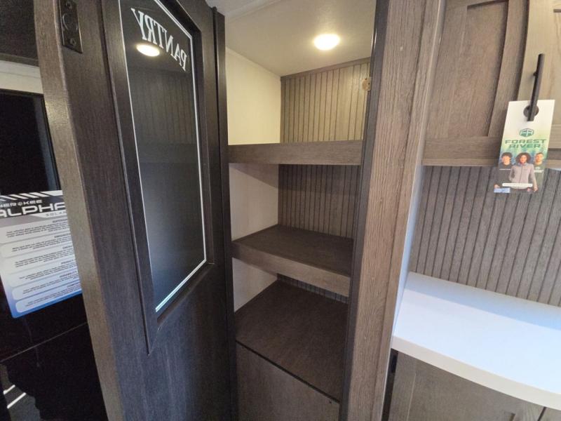 With any Cherokee Alpha Wolf travel trailer by Forest River you'll enjoy outstanding amenities, quality construction, and an affordable price. Each model features a "ToughBend" rigid skirt metal design, 5/8" tongue and groove plywood floor decking, and a "SuperTruss" roof structure that will hold up through years of camping memories. There is a pet friendly "clean sweep" floor design with no heat vents indoors, along with a super lumen lighting system, a 15,000 BTU quick cool central air conditioning, and many more comforts. There are many convenient exterior features such as, Leash Latch pet safety technology, an outside shower with hot and cold water, and exterior steps with oversized landing and quick release. The Weather Guard Package will add protection against the elements with an armored underbelly tank enclosure and forced air heat, thermo-control reflective safety glass windows, and upgraded laminated walls with block foam insulation!