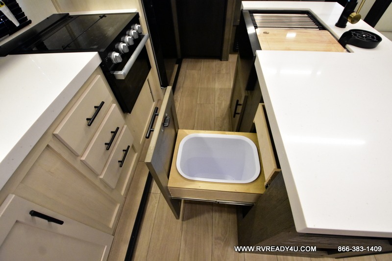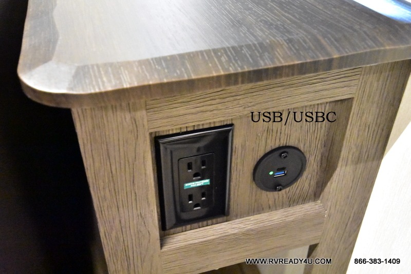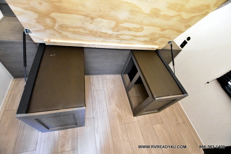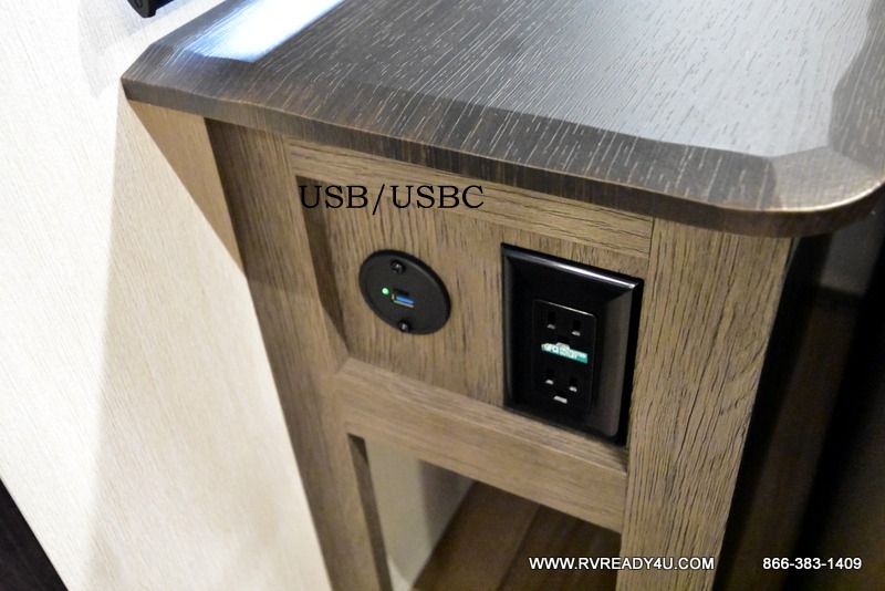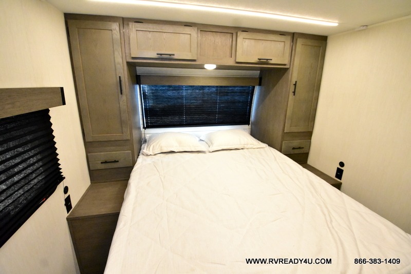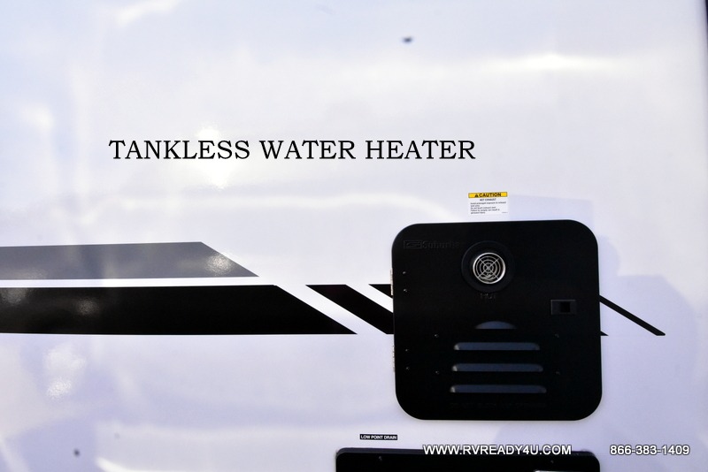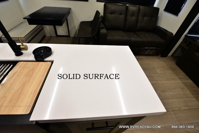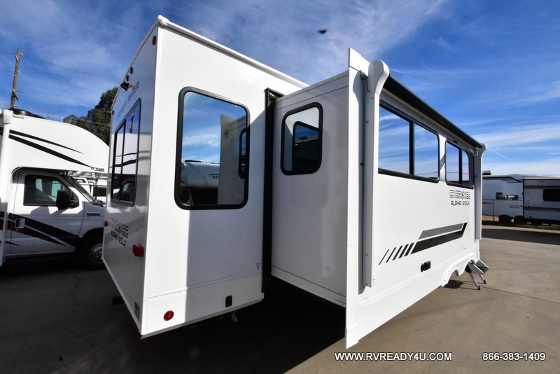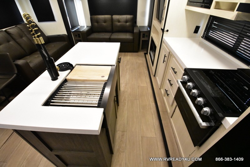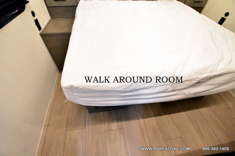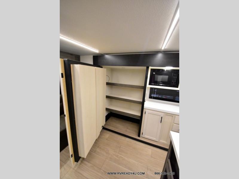 This trailer has it all for maximum comfort and convenience as well as entertainment! The rear living area includes a tri-fold sofa with a rear Pano-Vision window for great views of your campsite, and dual opposing slides widen this area so you can visit with friends. You'll also find theater seating, plus a free-standing table with two chairs and a storage ottoman seat. Enjoy the fireplace on a cool night or when you want a little ambiance while seated inside. Two patio awnings will provide an outdoor living area; just grab your camping chairs from the full pass-through storage. When you want to call it a night, fall quickly to sleep on the queen bed in the front bedroom with easy access to a dual entry bathroom!