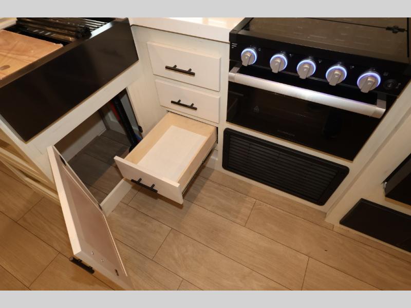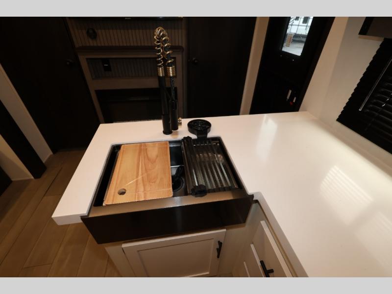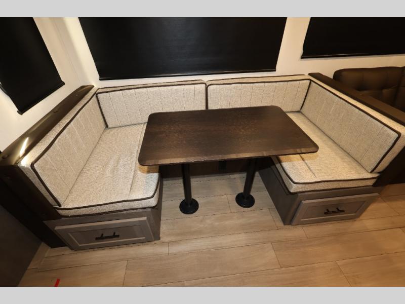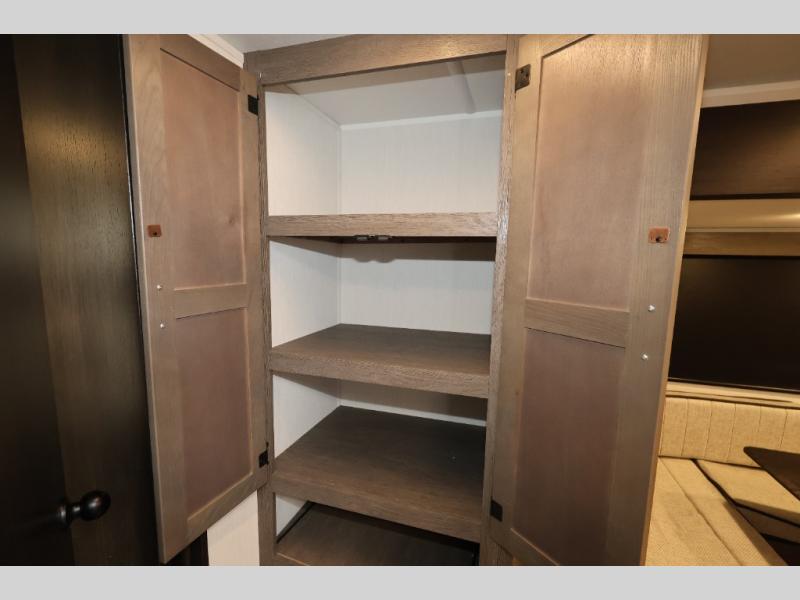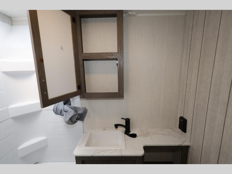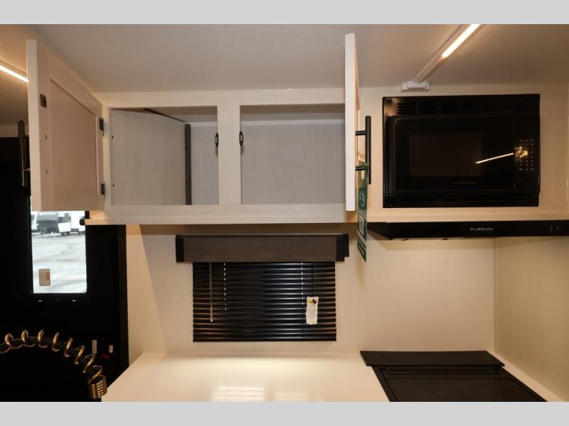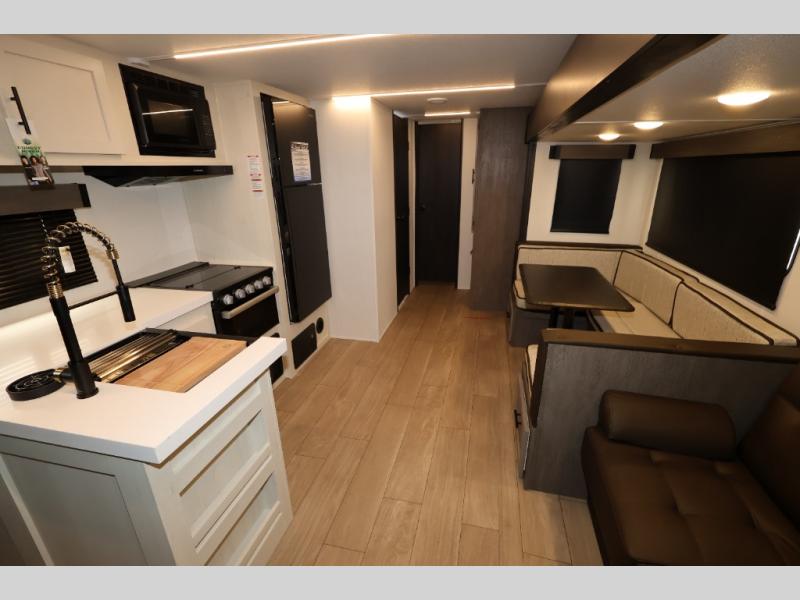 Looking for a spacious travel trailer to sleep nine or ten happy campers? You've found it in this Cherokee Alpha Wolf model with a handy outside kitchen, a bunkhouse with a dinette, a front private bedroom, and a large slide out! The main living and kitchen area has a U-shaped dinette to utilize as a dining table, game table, work station, and/or an extra sleeping space. There is also a jackknife sofa for seating, TV watching, or sleeping. From any seating area you can easily view the entertainment center and fireplace which is centered in the unit with doors on either side to the front private bedroom. You will also find a nice pantry and full kitchen amenities including a large sink, and residential-style refrigerator allowing you to easily create meals for your hungry crew. The exterior provides an 18' awning for an outdoor living area over the outside kitchen, and there is ample exterior storage for all of your camping gear like camp chairs, outside games, rugs, and more.