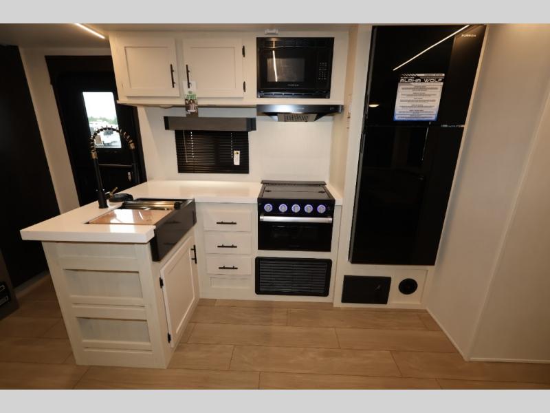 With any Cherokee Alpha Wolf travel trailer by Forest River you'll enjoy outstanding amenities, quality construction, and an affordable price. Each model features a "ToughBend" rigid skirt metal design, 5/8" tongue and groove plywood floor decking, and a "SuperTruss" roof structure that will hold up through years of camping memories. There is a pet friendly "clean sweep" floor design with no heat vents indoors, along with a super lumen lighting system, a 15,000 BTU quick cool central air conditioning, and many more comforts. There are many convenient exterior features such as, Leash Latch pet safety technology, an outside shower with hot and cold water, and exterior steps with oversized landing and quick release. The Weather Guard Package will add protection against the elements with an armored underbelly tank enclosure and forced air heat, thermo-control reflective safety glass windows, and upgraded laminated walls with block foam insulation!