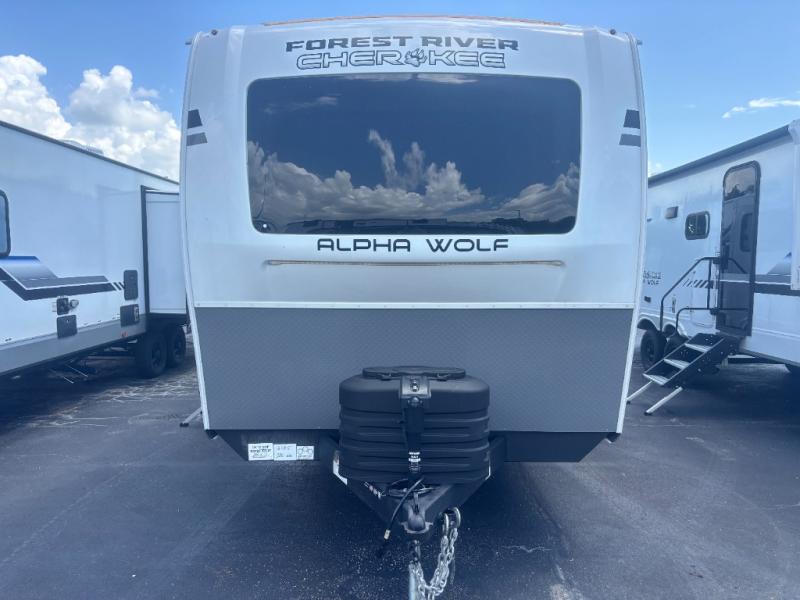 With any Cherokee Alpha Wolf travel trailer by Forest River you'll enjoy outstanding amenities, quality construction, and an affordable price. Each model features a "ToughBend" rigid skirt metal design, 5/8" tongue and groove plywood floor decking, and a "SuperTruss" roof structure that will hold up through years of camping memories. There is a pet friendly "clean sweep" floor design with no heat vents indoors, along with a super lumen lighting system, a 15,000 BTU quick cool central air conditioning, and many more comforts. There are many convenient exterior features such as, Leash Latch pet safety technology, an outside shower with hot and cold water, On The Go rear ladder prep, and exterior steps with oversized landing and quick release. The Weather Guard Package will add protection against the elements with an armored underbelly tank enclosure and forced air heat, thermo-control reflective safety glass windows, and upgraded laminated walls with block foam insulation!