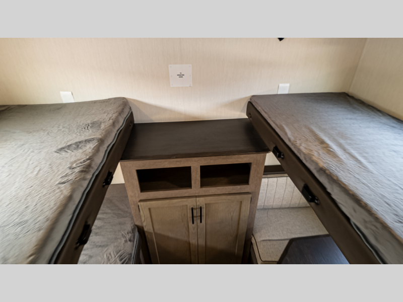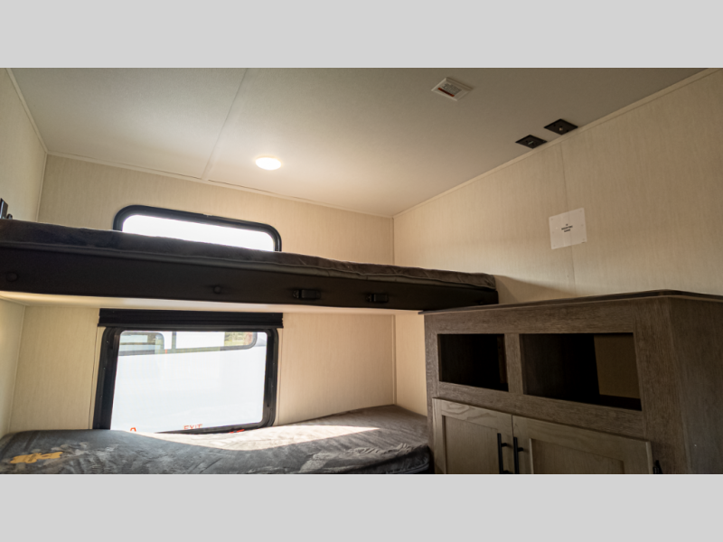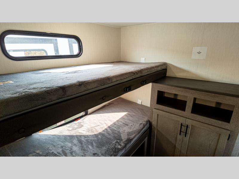 - Layout: Bunkhouse with 3 bunks + queen bedroom; 1 slide-out