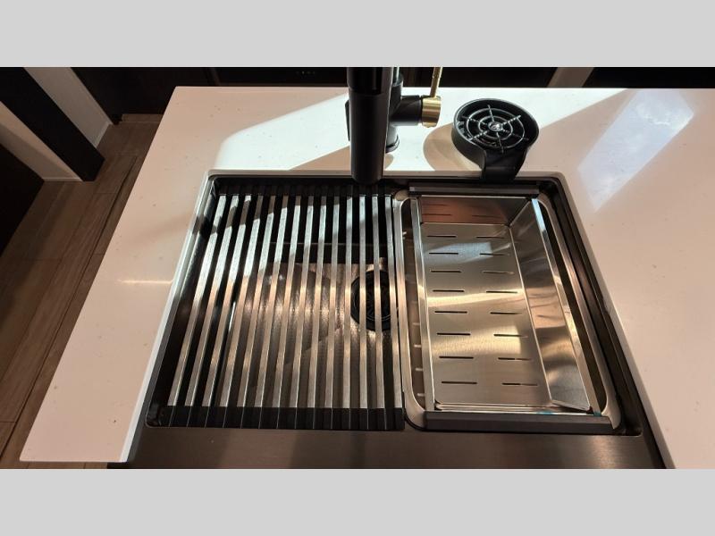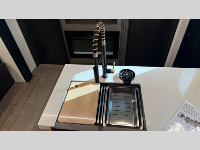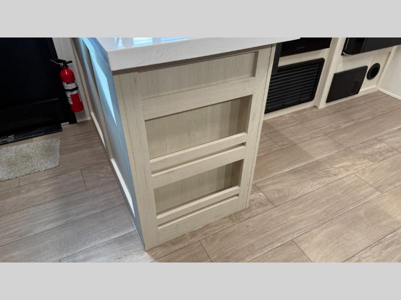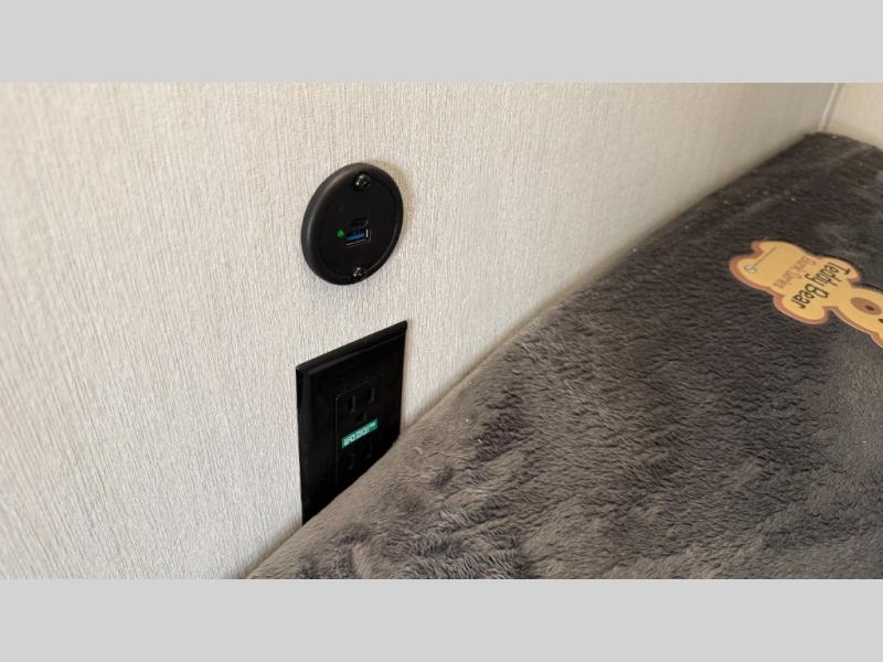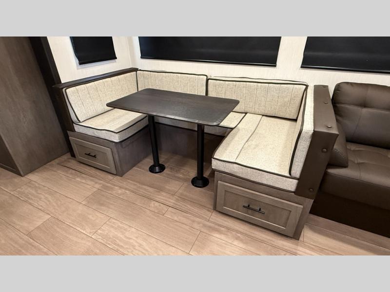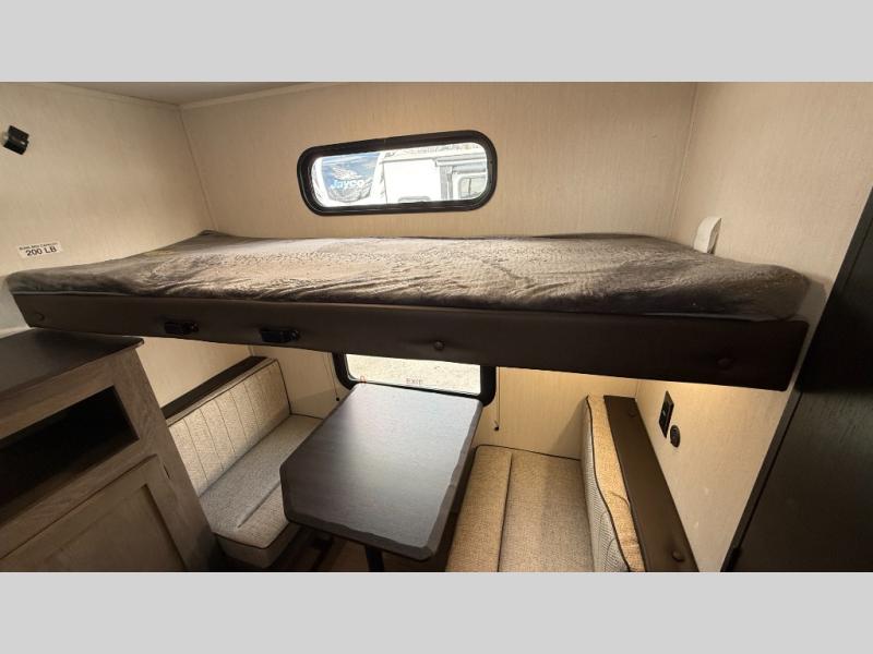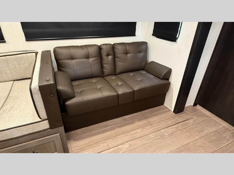 Looking for a spacious travel trailer to sleep nine or ten happy campers? You've found it in this Cherokee Alpha Wolf model with a handy outside kitchen, a bunkhouse with a dinette, a front private bedroom, and a large slide out! The main living and kitchen area has a U-shaped dinette to utilize as a dining table, game table, work station, and/or an extra sleeping space. There is also a jackknife sofa for seating, TV watching, or sleeping. From any seating area you can easily view the entertainment center and fireplace which is centered in the unit with doors on either side to the front private bedroom. You will also find a nice pantry and full kitchen amenities including a large sink, and residential-style refrigerator allowing you to easily create meals for your hungry crew. The exterior provides an 18' awning for an outdoor living area over the outside kitchen, and there is ample exterior storage for all of your camping gear like camp chairs, outside games, rugs, and more.