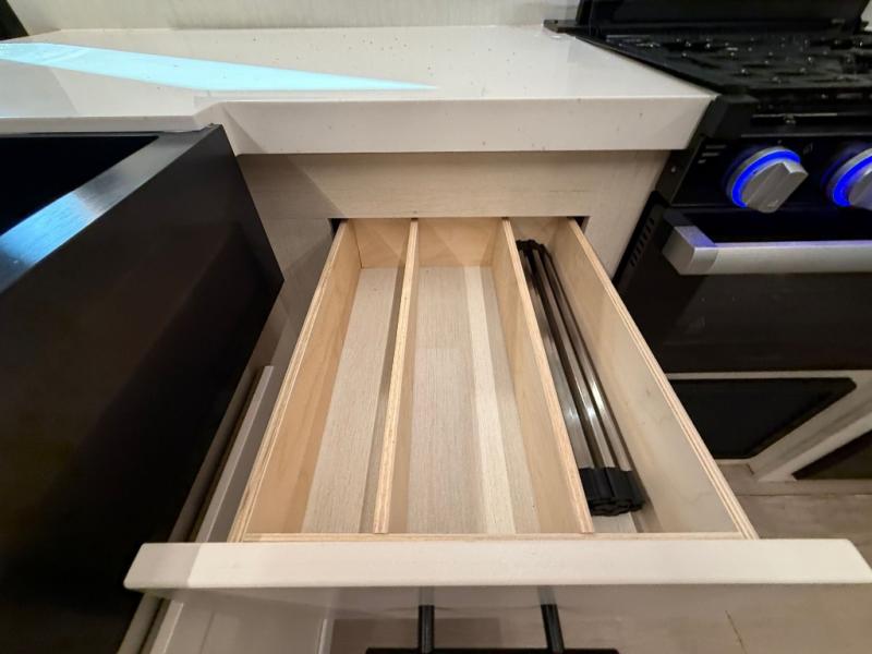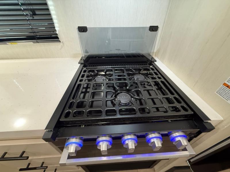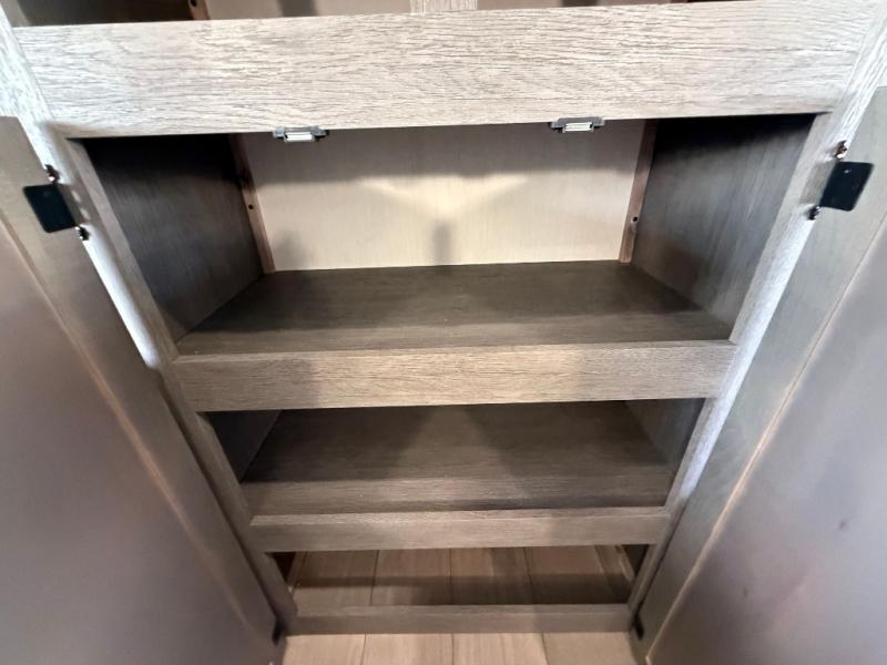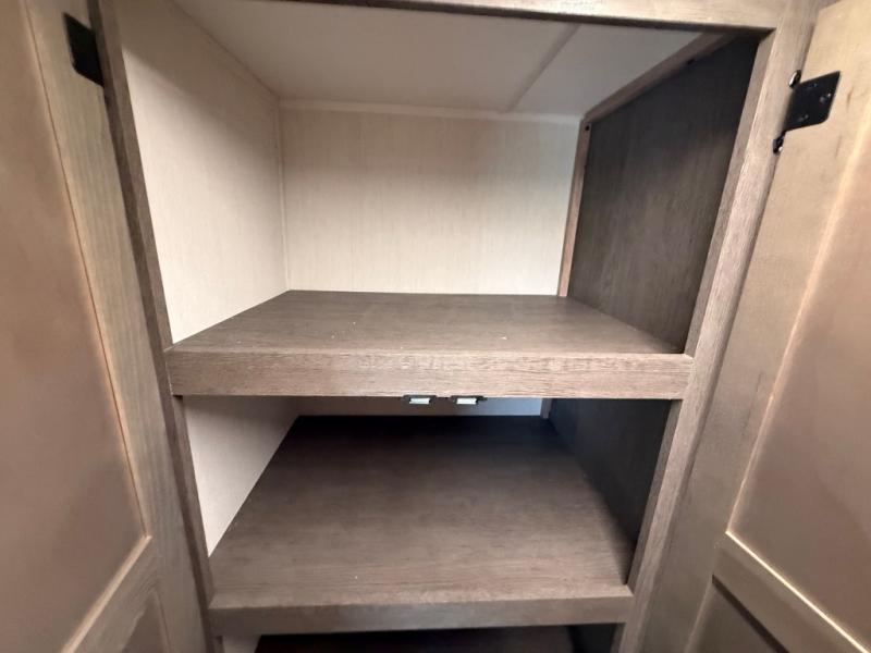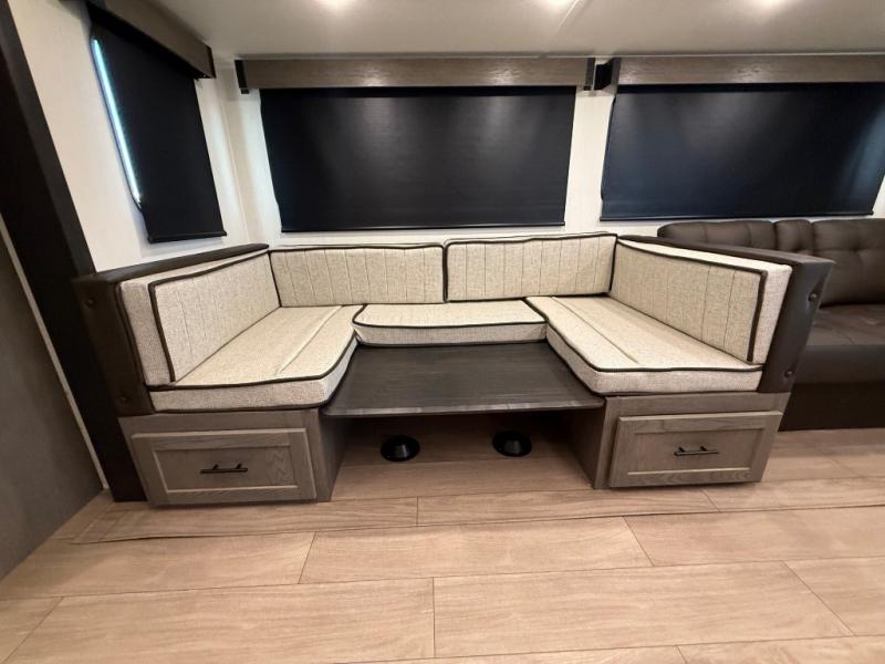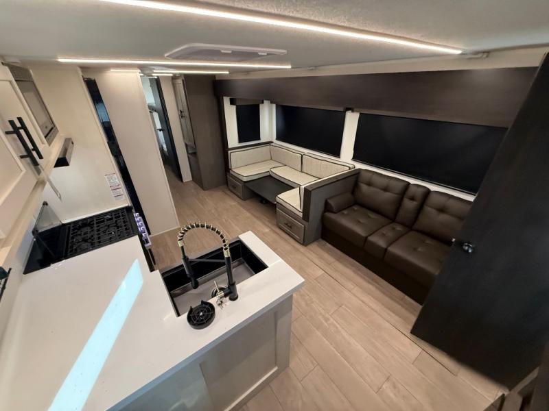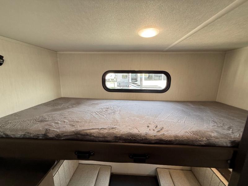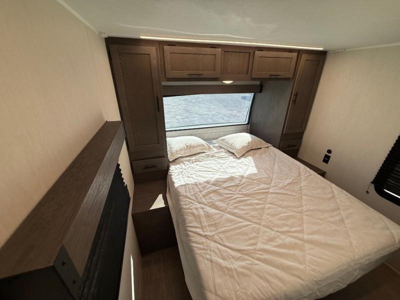Looking for a spacious travel trailer to sleep nine or ten happy campers? You've found it in this Cherokee Alpha Wolf model with a handy outside kitchen, a bunkhouse with a dinette, a front private bedroom, and a large slide out! The main living and kitchen area has a U-shaped dinette to utilize as a dining table, game table, work station, and/or an extra sleeping space. There is also a jackknife sofa for seating, TV watching, or sleeping. From any seating area you can easily view the entertainment center and fireplace which is centered in the unit with doors on either side to the front private bedroom. You will also find a nice pantry and full kitchen amenities including a large sink, and residential-style refrigerator allowing you to easily create meals for your hungry crew. The exterior provides an 18' awning for an outdoor living area over the outside kitchen, and there is ample exterior storage for all of your camping gear like camp chairs, outside games, rugs, and more.