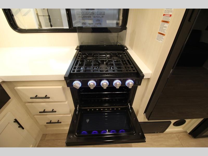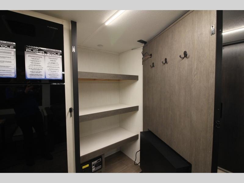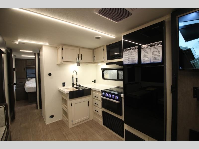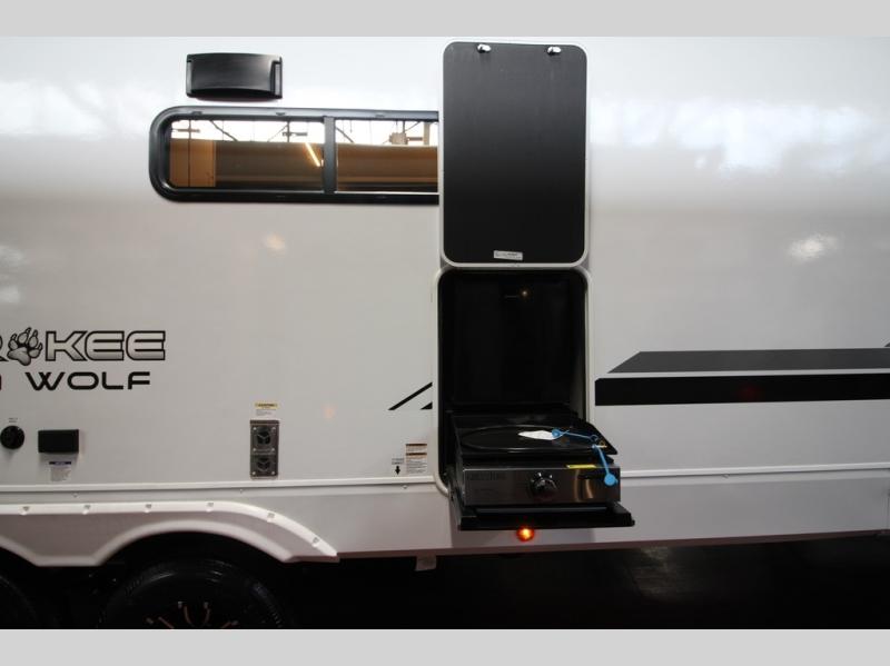 With any Cherokee Alpha Wolf travel trailer by Forest River, you'll enjoy outstanding amenities, quality construction, and an affordable price. Each model features a "ToughBend" rigid skirt metal design, 5/8" tongue and groove plywood floor decking, and a "SuperTruss" roof structure built for countless camping memories. There is a pet friendly "clean sweep" floor design with no heat vents indoors, along with a super lumen lighting system, a 15,000 BTU quick cool central air conditioning, and many more comforts. There are many convenient exterior features such as, Leash Latch pet safety technology, an outside shower with hot and cold water, and exterior steps with oversized landing and quick release. The Weather Guard Package will add protection against the elements with an armored underbelly tank enclosure and forced air heat, thermo-control reflective safety glass windows, and upgraded laminated exterior walls with block foam insulation!