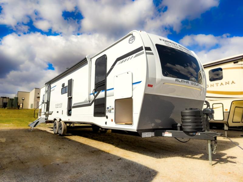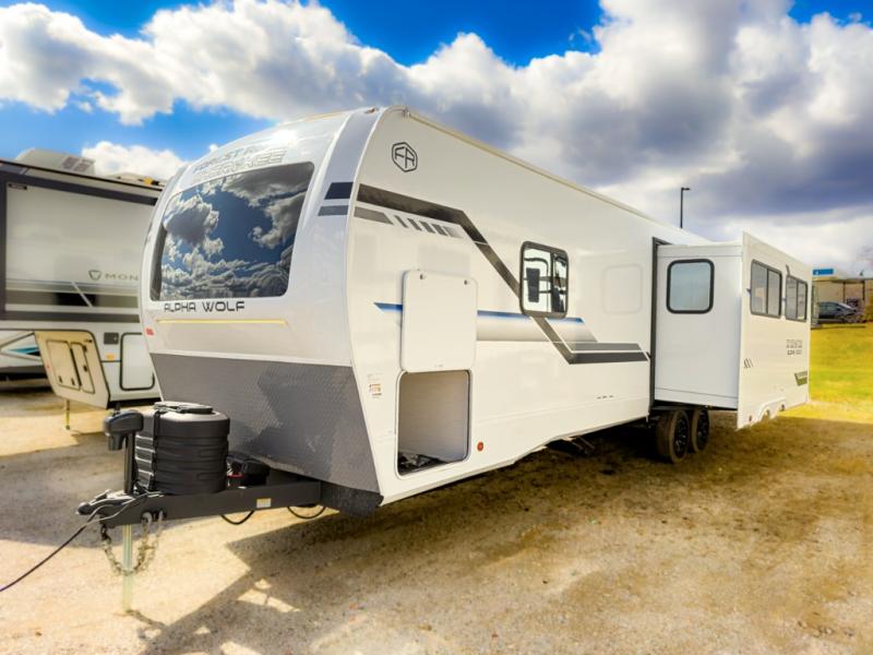 A: The Alpha Wolf 29DCB delivers a dedicated rear bunkroom, slide-out living area, and outdoor kitchen so family camping feels organized instead of crowded.