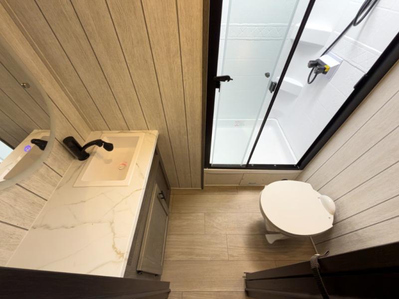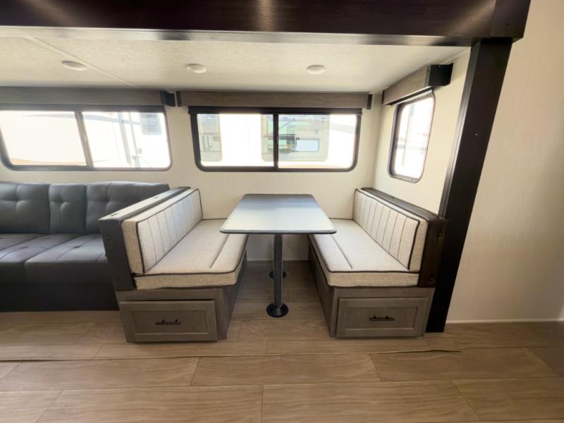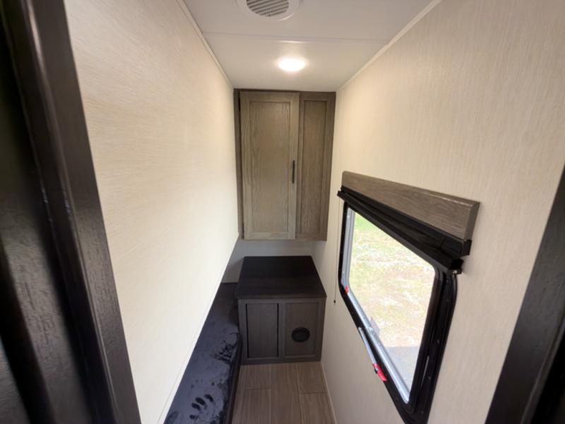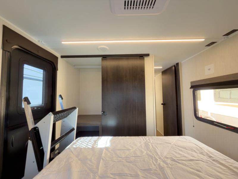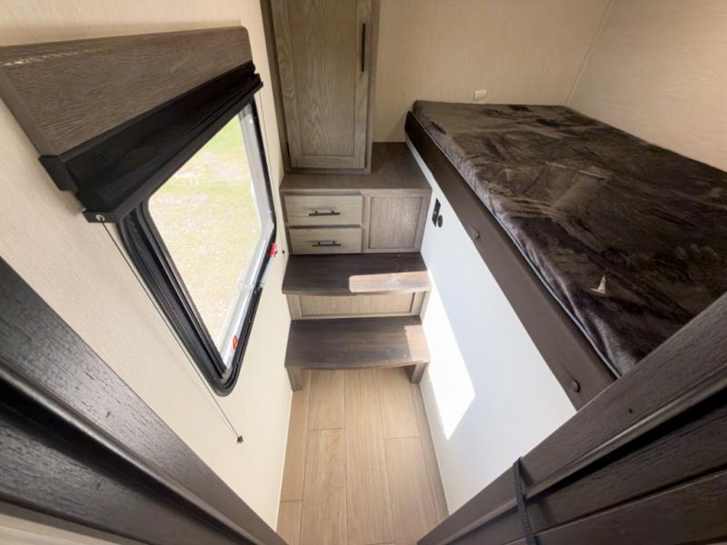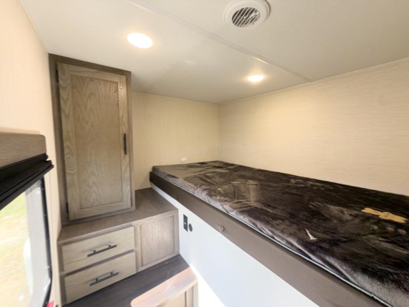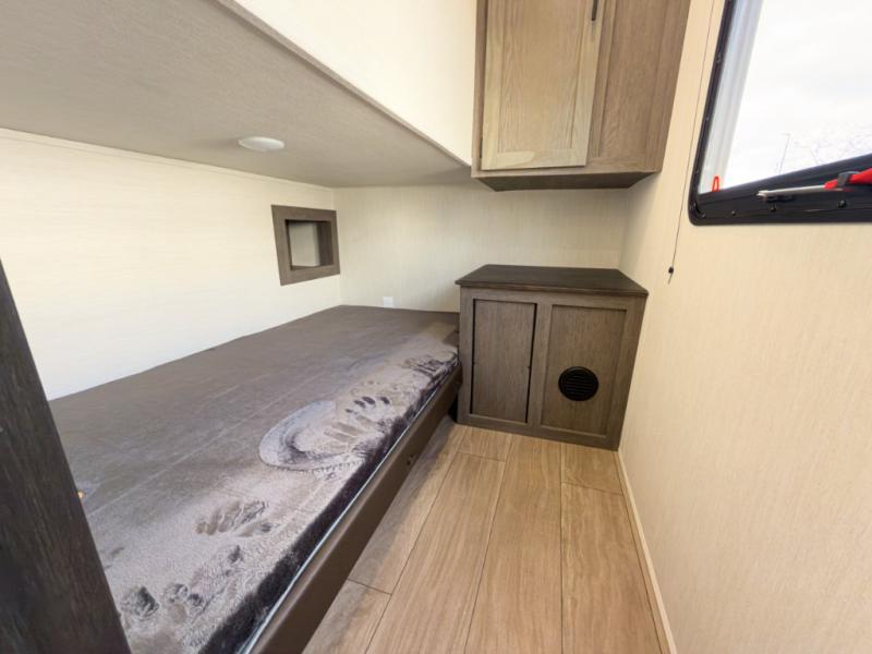 Many bunkhouse trailers place beds in the main living space. The 29DCB separates the bunkroom from the living area, creating better privacy while still keeping the trailer balanced for family travel.