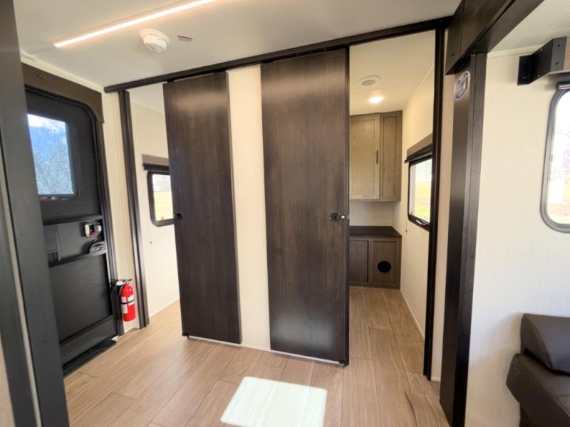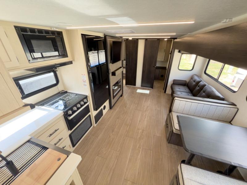 Michigan family camping works better when everyone has their own space. The Alpha Wolf 29DCB keeps the kids in a rear bunkroom while the main living area stays open and comfortable.