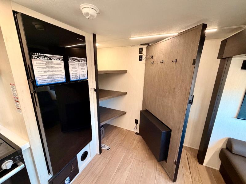 With any Cherokee Alpha Wolf travel trailer by Forest River you'll enjoy outstanding amenities, quality construction, and an affordable price. Each model features a "ToughBend" rigid skirt metal design, 5/8" tongue and groove plywood floor decking, and a "SuperTruss" roof structure that will hold up through years of camping memories. There is a pet friendly "clean sweep" floor design with no heat vents indoors, along with a super lumen lighting system, a 15,000 BTU quick cool central air conditioning, and many more comforts. There are many convenient exterior features such as, Leash Latch pet safety technology, an outside shower with hot and cold water, and exterior steps with oversized landing and quick release. The Weather Guard Package will add protection against the elements with an armored underbelly tank enclosure and forced air heat, thermo-control reflective safety glass windows, and upgraded laminated walls with block foam insulation!