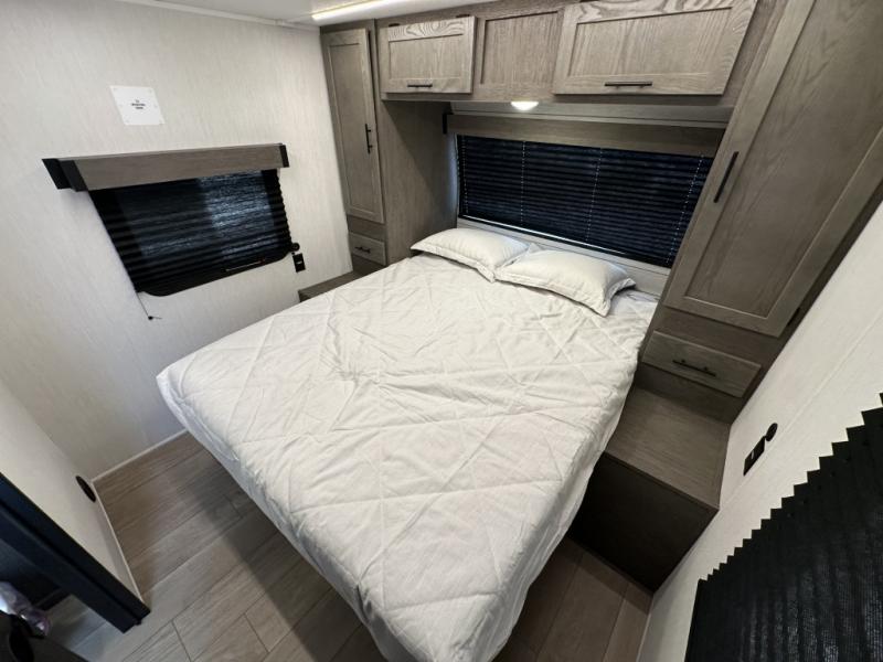 With any Cherokee Alpha Wolf travel trailer by Forest River you'll enjoy outstanding amenities, quality construction, and an affordable price. Each model features a "ToughBend" rigid skirt metal design, 5/8" tongue and groove plywood floor decking, and a "SuperTruss" roof structure that will hold up through years of camping memories. There is a pet friendly "clean sweep" floor design with no heat vents indoors, along with a super lumen lighting system, a 15,000 BTU quick cool central air conditioning, and many more comforts. There are many convenient exterior features such as, Leash Latch pet safety technology, an outside shower with hot and cold water, and exterior steps with oversized landing and quick release. The Weather Guard Package will add protection against the elements with an armored underbelly tank enclosure and forced air heat, thermo-control reflective safety glass windows, and upgraded laminated walls with block foam insulation!