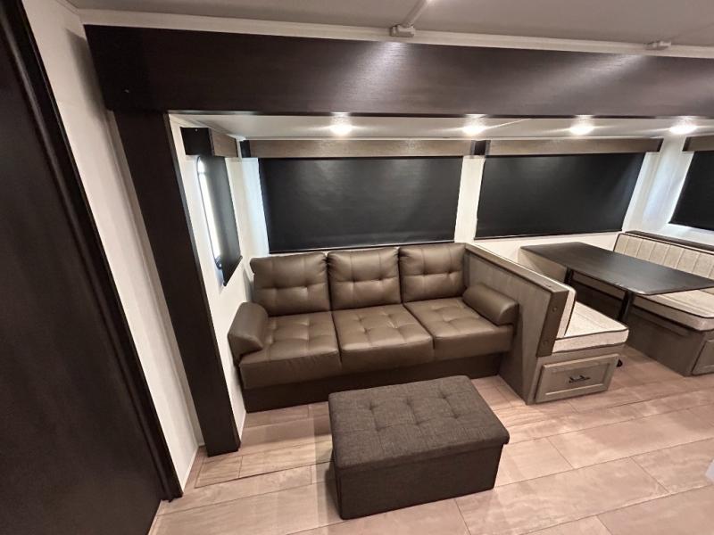 REAR PRIVATE BUNK ROOM / OUTSIDE KITCHEN / TWO BATHROOMS / 3 SLIDE OUT / TWO AC / 200 W SOLAR PANEL