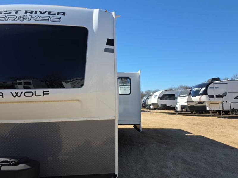 With any Cherokee Alpha Wolf travel trailer by Forest River, you'll enjoy outstanding amenities, quality construction, and an affordable price. Each model features a "ToughBend" rigid skirt metal design, 5/8" tongue and groove plywood floor decking, and a "SuperTruss" roof structure built for countless camping memories. There is a pet friendly "clean sweep" floor design with no heat vents indoors, along with a super lumen lighting system, a 15,000 BTU quick cool central air conditioning, and many more comforts. There are many convenient exterior features such as, Leash Latch pet safety technology, an outside shower with hot and cold water, and exterior steps with oversized landing and quick release. The Weather Guard Package will add protection against the elements with an armored underbelly tank enclosure and forced air heat, thermo-control reflective safety glass windows, and upgraded laminated exterior walls with block foam insulation!